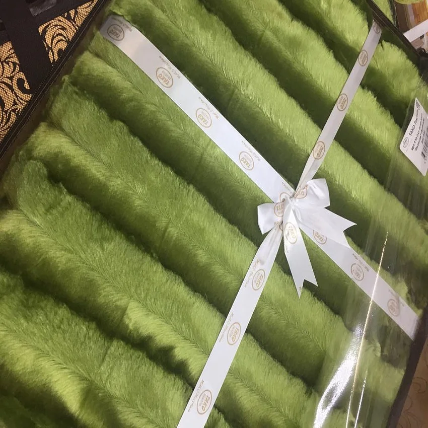 Меховой плед покрывало выполнен из акрила, на ощупь напоминает натуральный мех, нежный и приятный. На нем комфортно отдыхать, лежа с книжкой или перед телевизором. Также можно использовать, как легкое одеяло.