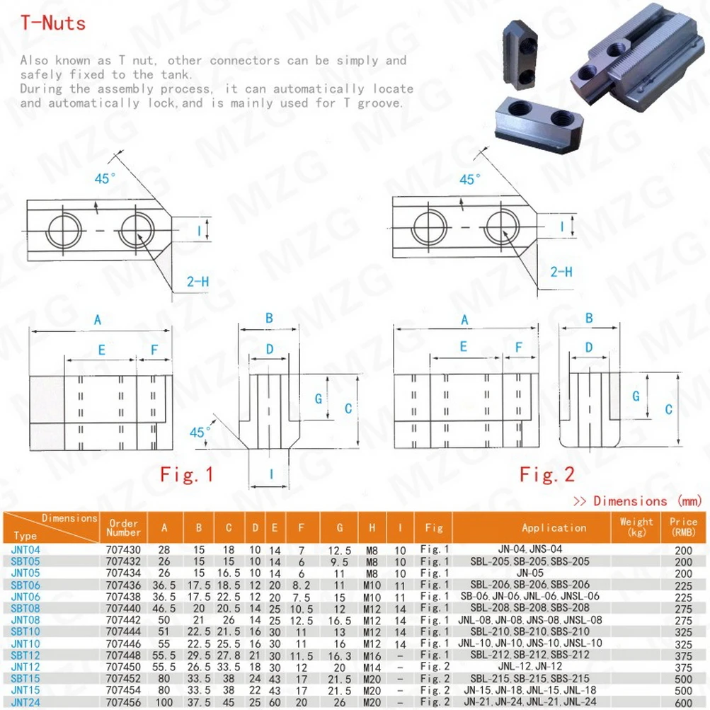 1.MZG T-Slot деталиMZG T-Slot параметры спецификации