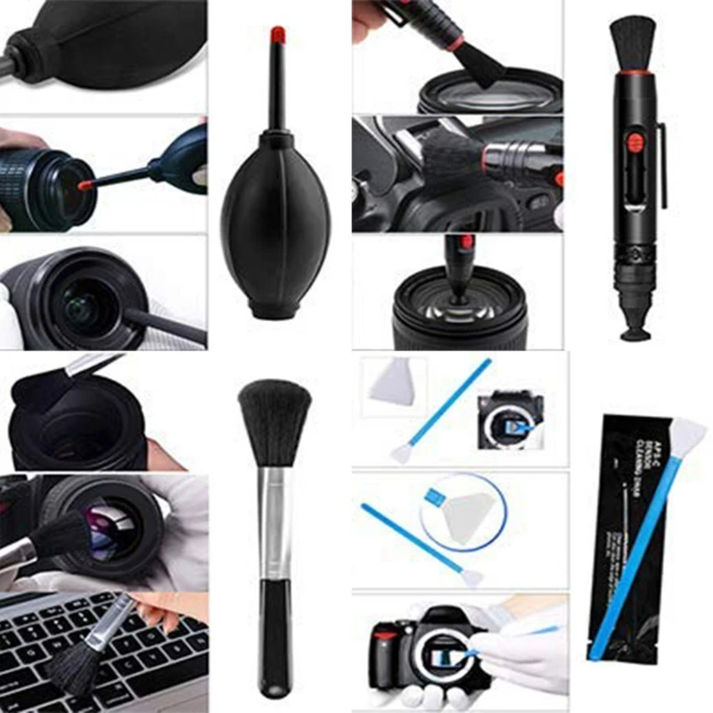 29-в-1 профессиональный набор чистящих средств для ухода за камерой с щеточкой для пыли, чистящие тампоны и салфетки, солнцезащитные очки чехол из микрофибры, солнцезащитные очки чистящих средств для ухода за камерой ручка, tweezeer и многое другое.