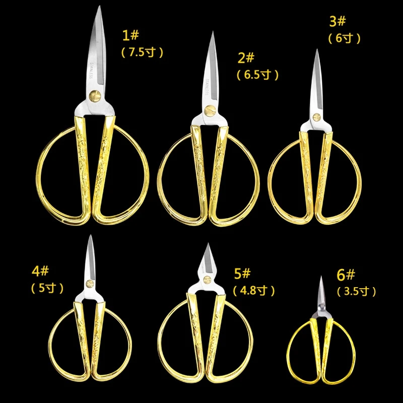 6 размеров, нержавеющая сталь, золотые швейные ножницы, короткий резак, прочный, высокая сталь, винтажные, портной ножницы для ткани, ремесло, домашнее хозяйство