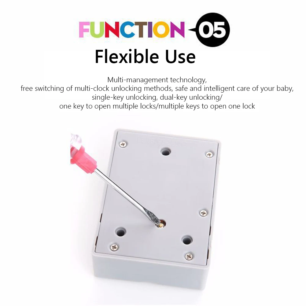 1. Гибкое использование, несколько технологий управления, свободное переключение многочасовых методов разблокировки. Безопасный и умный уход за вашим ребенком. Один ключ разблокировки/двойной ключ разблокировки/один ключ для открытия нескольких замков/несколько ключей для открытия одного замка.