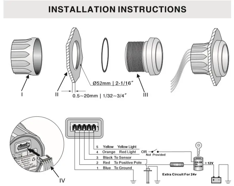 Красный-аккумулятор (+ 18-32VDC) синий-аккумулятор (-) оранжевый/желтый-подсветка (+ 18-32VDC)