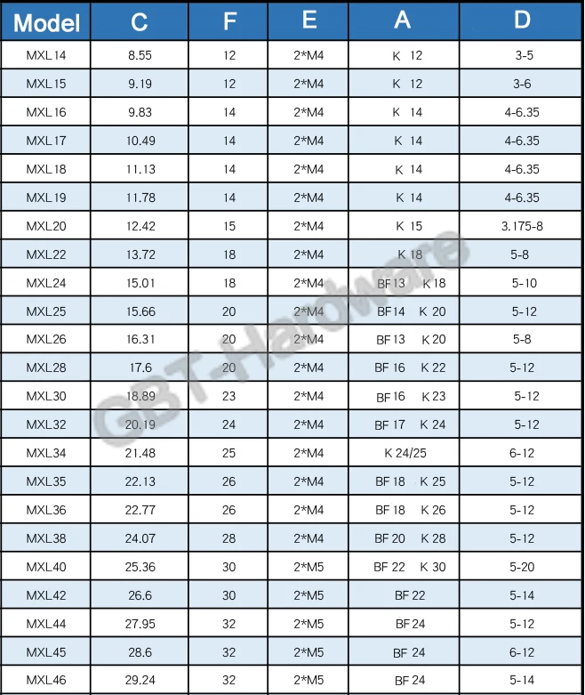 Внутреннее отверстие: Тип BF 5/6/6.35/7/8/10/12/14/15/17 мм