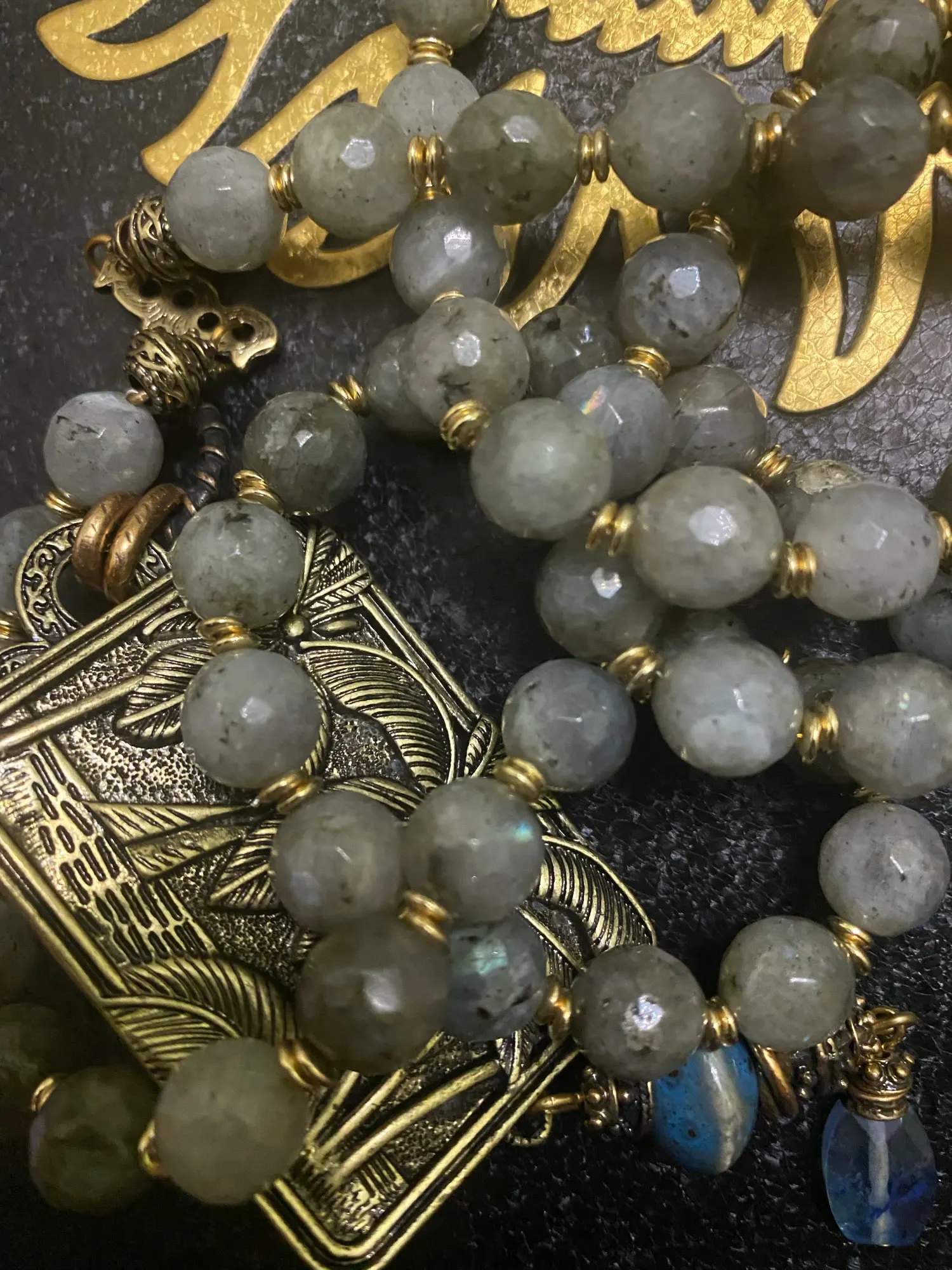 9 January 2022·Show originalNecklace, beautiful, beads heavy from natural stone, looks like Labrador, there is an irization