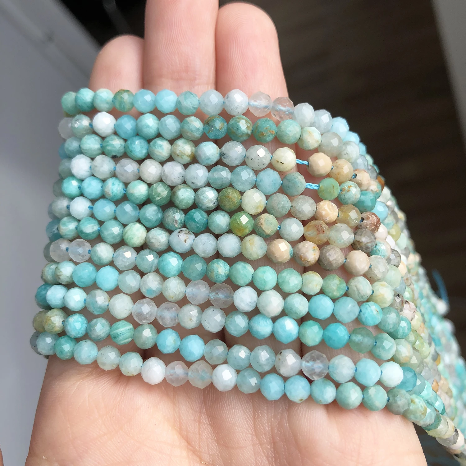 Items Name:4mm Natural Gem Stone Faceted Blue Amazonite Loose Spacer Beads for Jewelry DIY Making Bracelet Earrings Accessories 15''Inches
