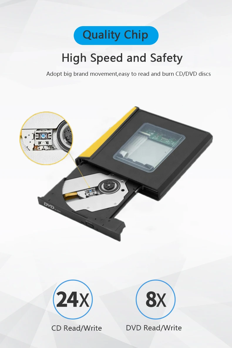 На основе совместимости с USB 3.0and 2,0, ваш DVD /CD запись, чтение и запись передачи данных будет быстрее и стабильнее