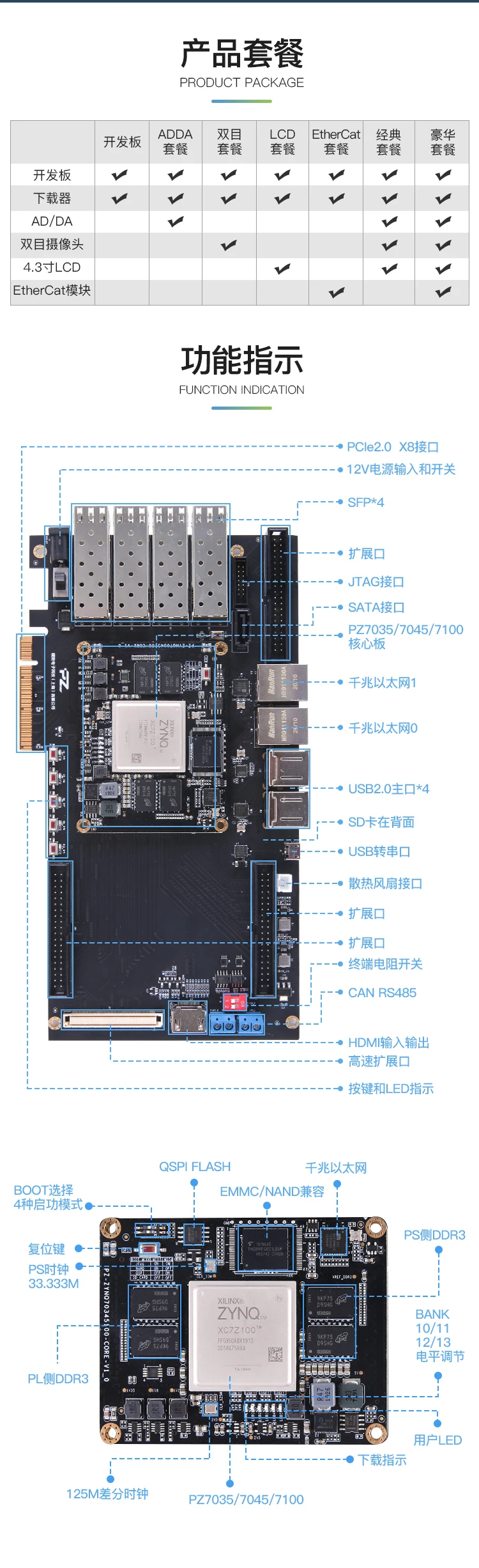 PZ7035 / PZ7045 / PZ7100PCIE2.0 по 8 интерфейсам, интерфейс SFP x4, SATA x1 ShuangQian mega Ethernet, интерфейс USB2.0 x4, HDMI вход и выход подходит для PCle, видеоизображения, оптическое волокно/Ethernet связь и т. Д.