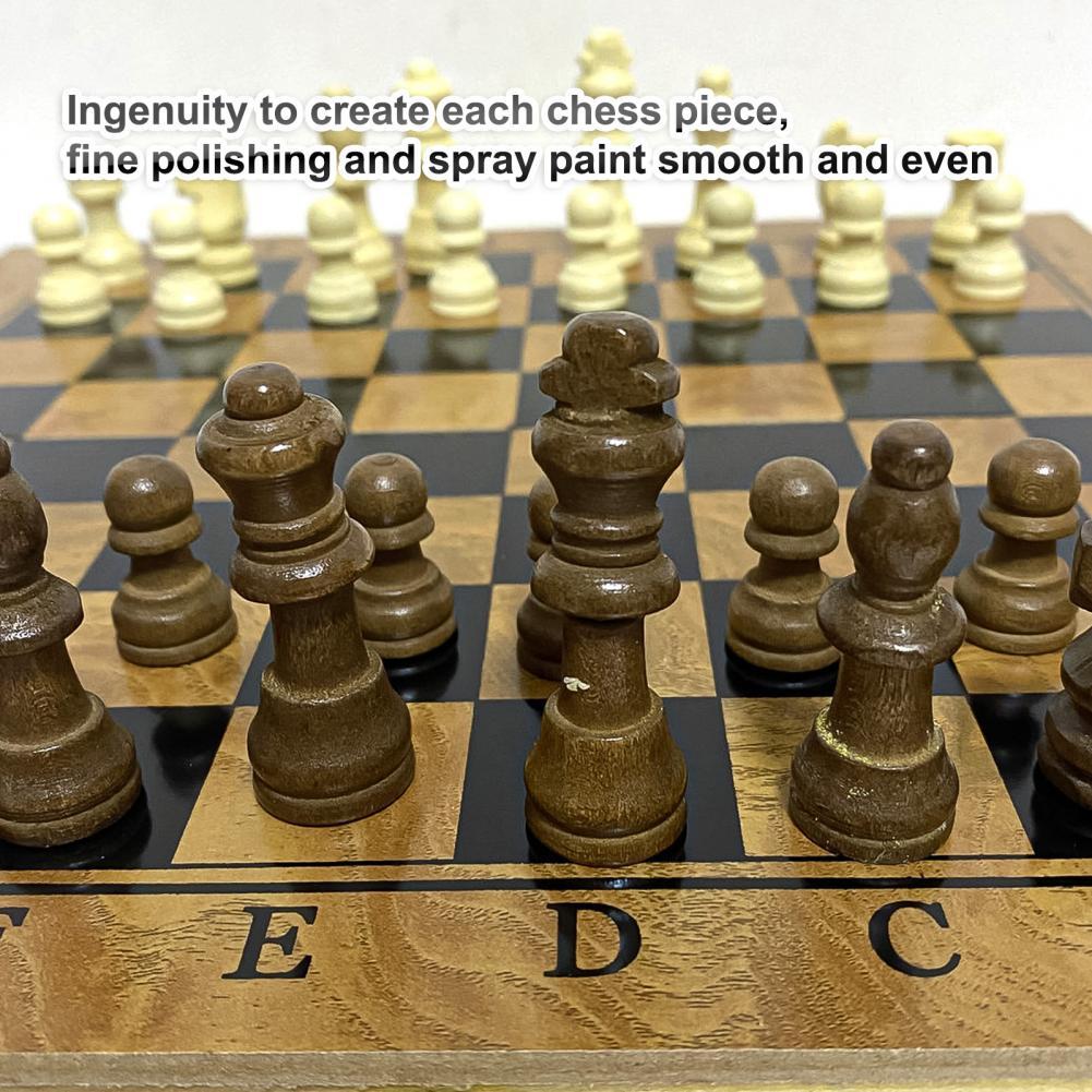 Изделие изготовлено из прочной древесины. Шахматная доска имеет тонкую текстуру, хорошо сделанные шахматные фигуры, высокое качество изготовления, высокое качество и гладкое ощущение руки.