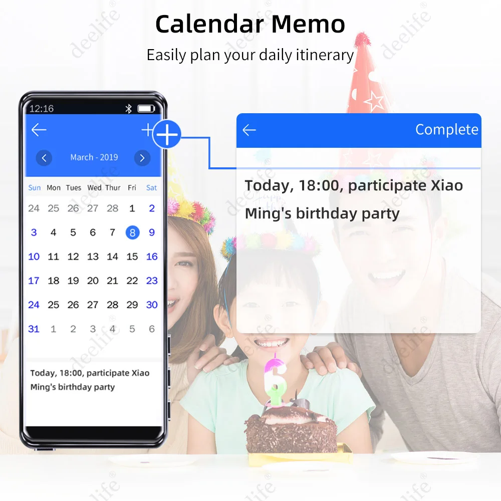 Mp3-плеер, bluetooth-плеер, fm-радио, календарь, электронная книга, запись, монитор для расчета, воспроизведение видео, просмотр изображения, секундомер, игры.