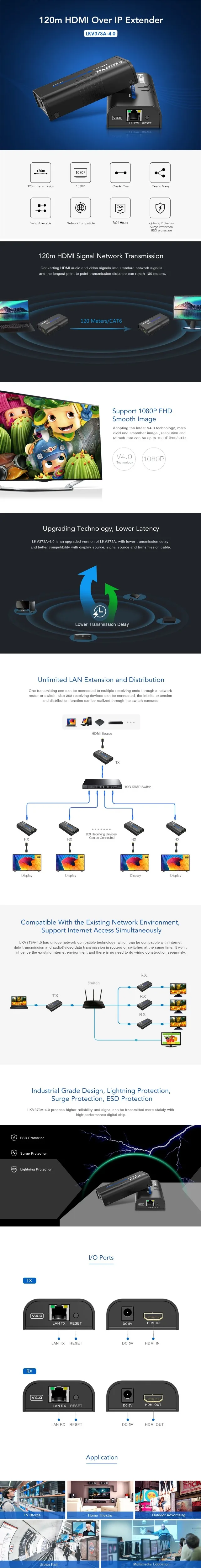 Он может передавать HDMI-совместимый сигнал 1080P на более 120 м с помощью UTP Cat5e/6.