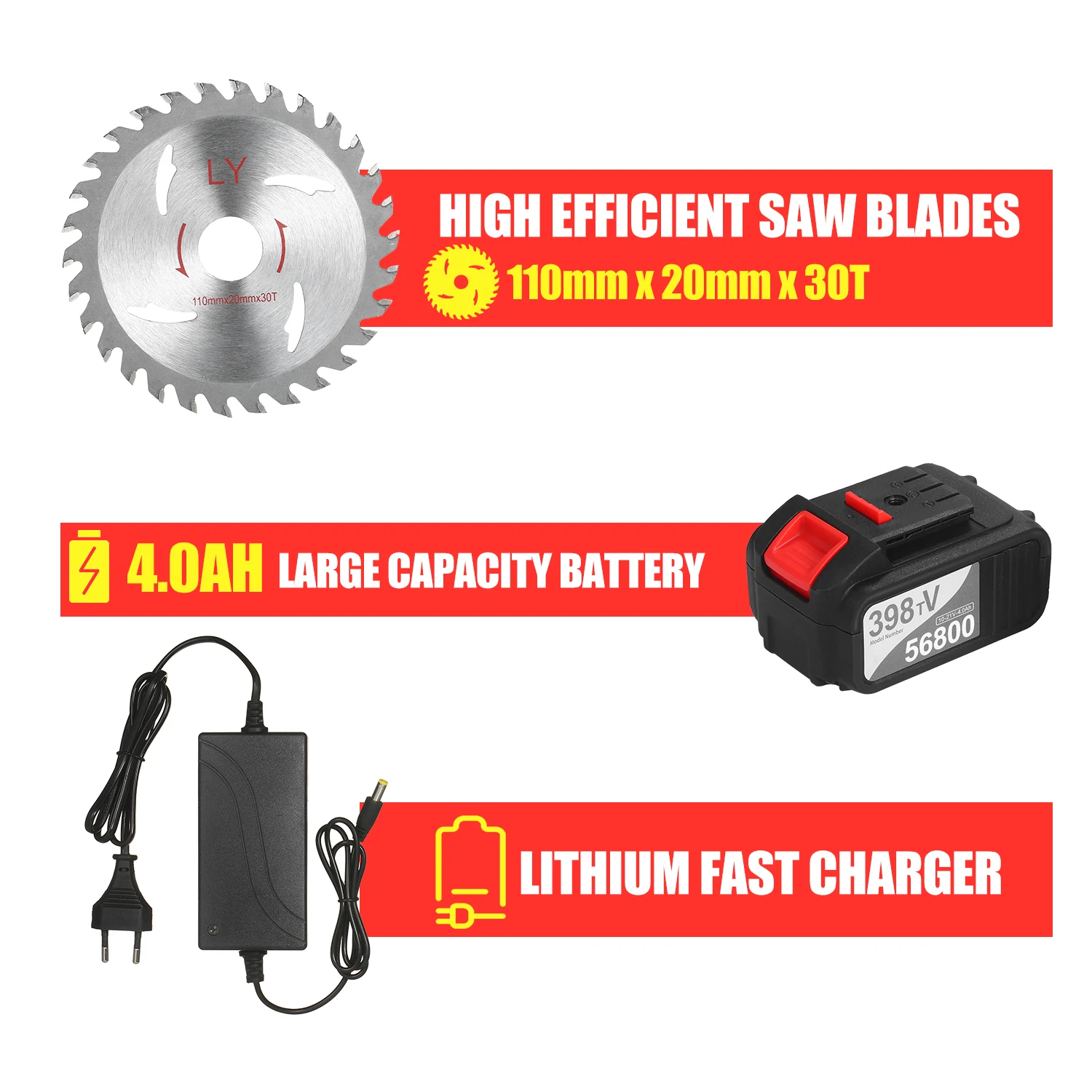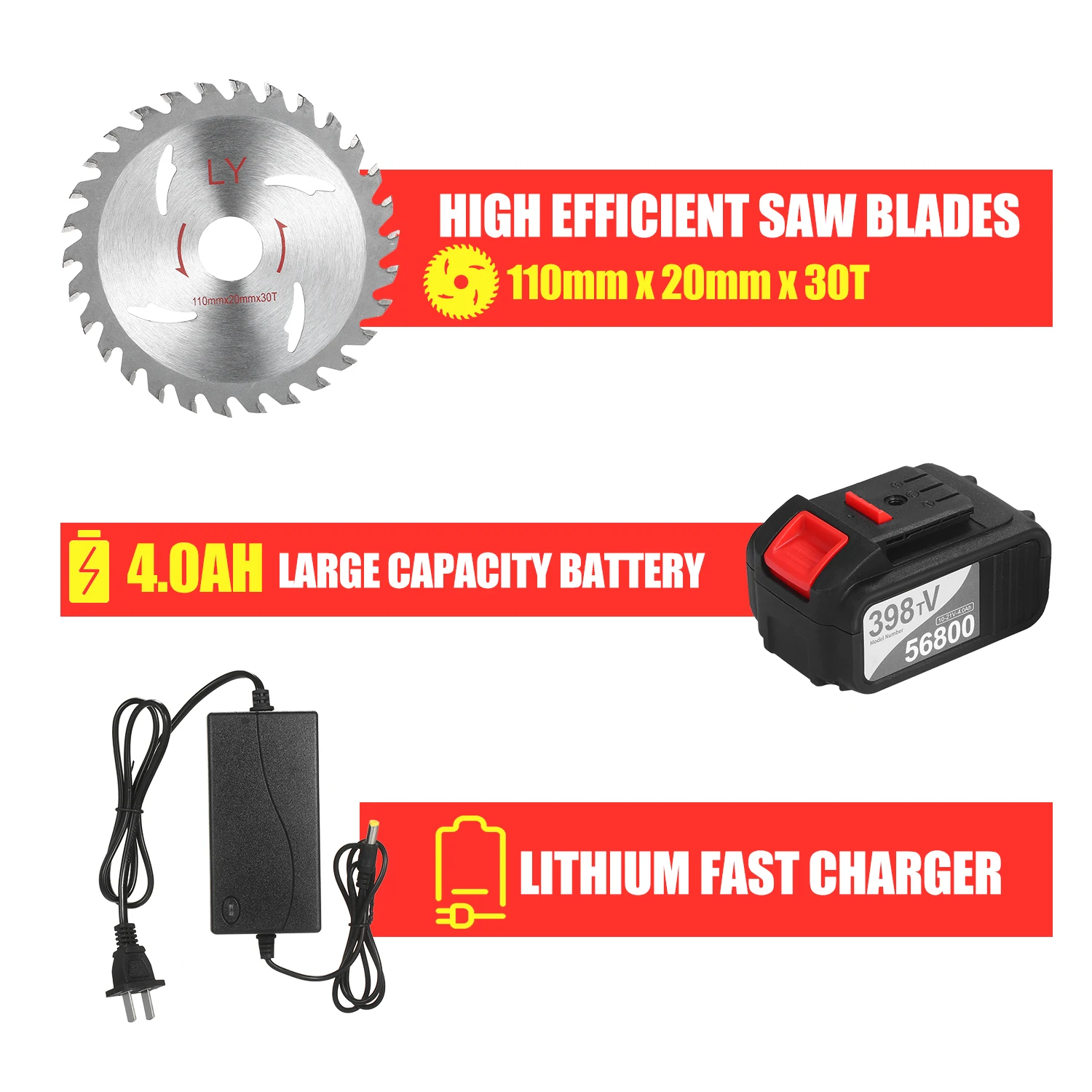 Долгое время работы и срок службы батареи-Беспроводная циркулярная пила совместима с 4.0Ah сменной батареей, эта батарея может обеспечить супер длительное время и сильный источник энергии для тяжелой работы. С помощью этого аккумулятора вы можете избавиться от шнура, работать свободно в любом месте в любое время.