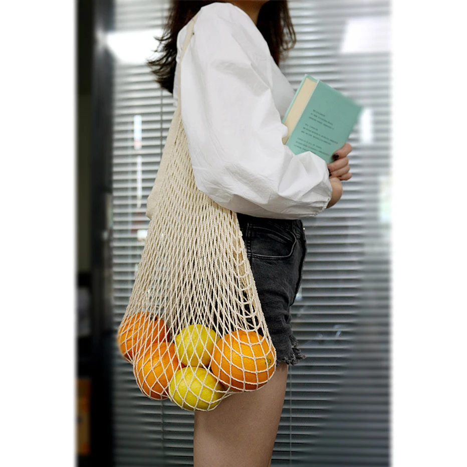 Хлопковая сетка, естественно, тянется, более просторна. Сетчатые Сумки для покупок делают все возможное для хранения фруктов, овощей, особенно для плавания летом и переноски пляжных игрушек и сопутствующих вещей. Вы не будете тащить песок домой в своих сумках.
