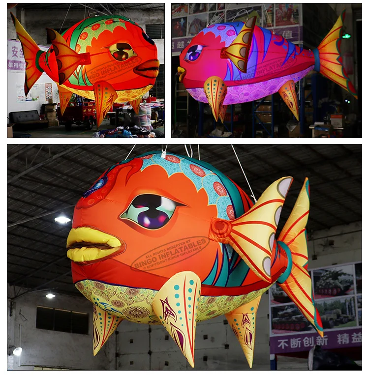 Висячие 2,3x1,6 метров надувные клоуны с RGB освещением для шоу сценическое украшение надутые красочные рыбные игрушки-BG-A1023-3