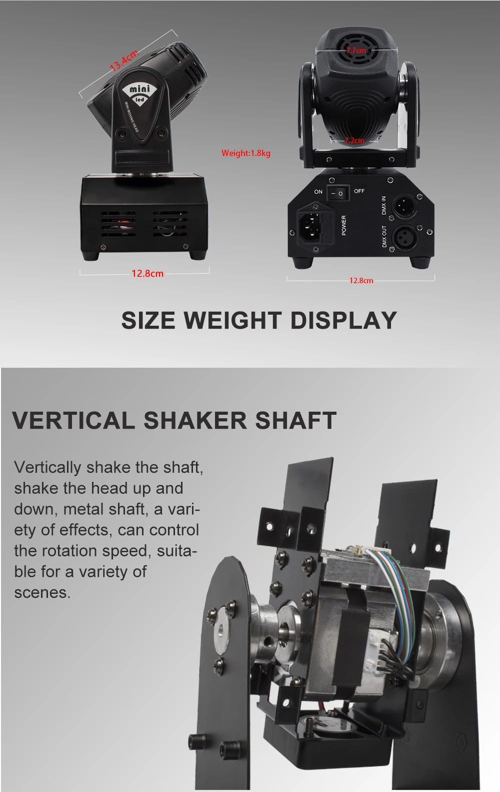 * Режимы управления:DMX512, Авто запуск, звуковое действие, стробоскоп, автономный и мастер/раб, с богатой передовой встроенной программой