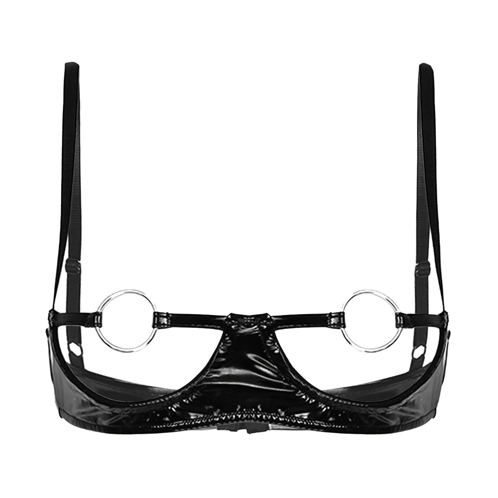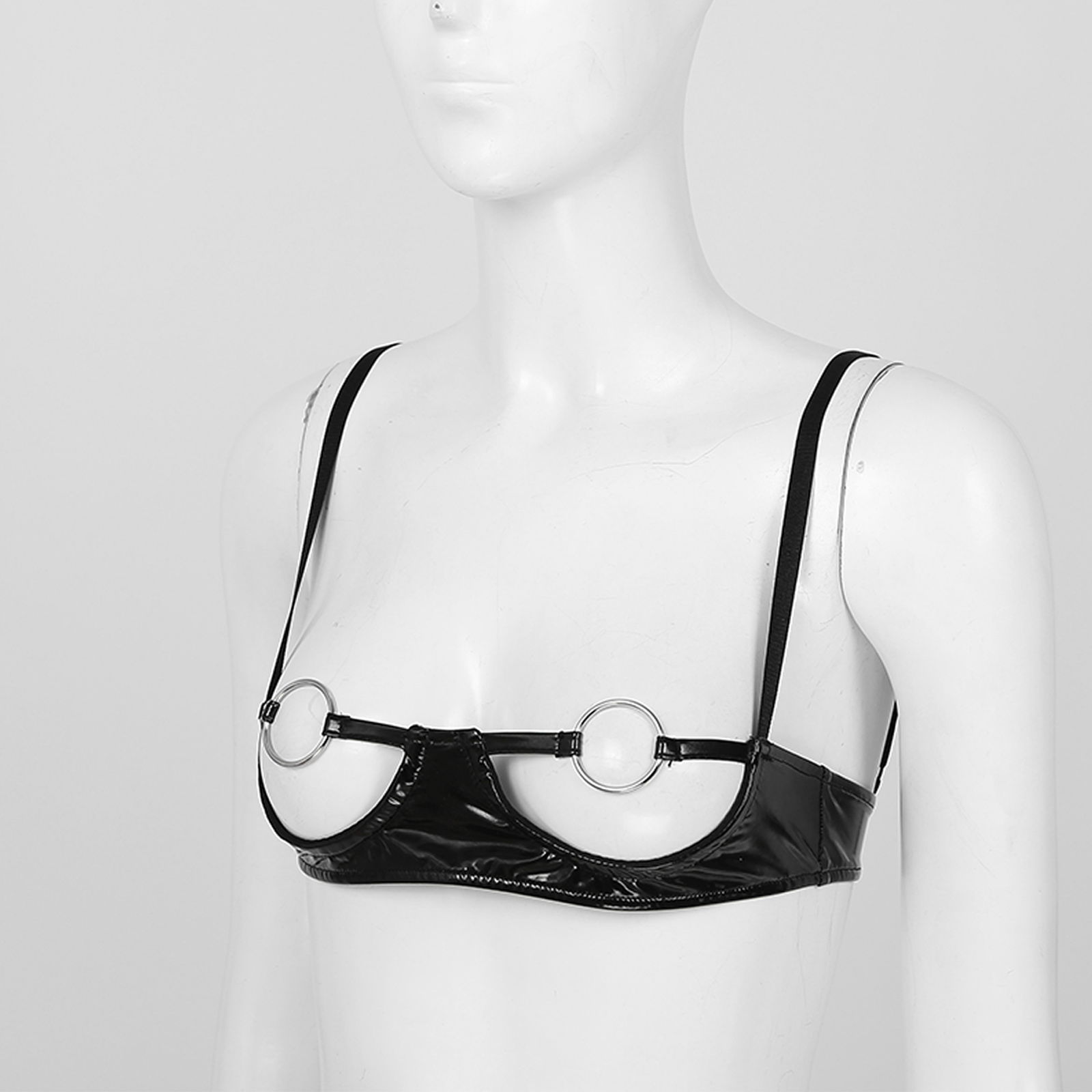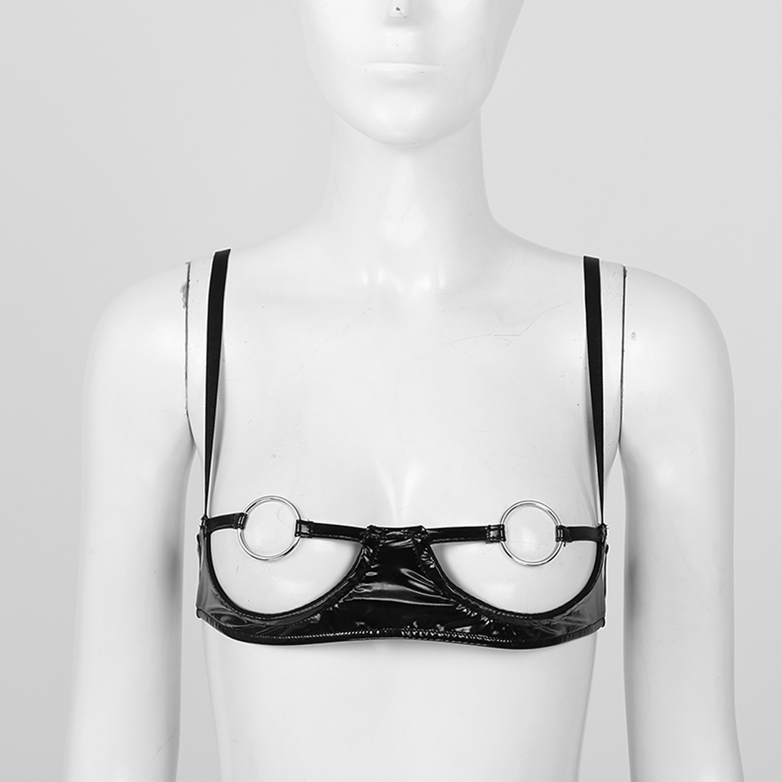 Женский сексуальный бюстгальтер, открытые чашечки, круглый вырез, беспроводное бикини, нижнее белье, регулируемые лямки, бюстгальтер из лакированной кожи