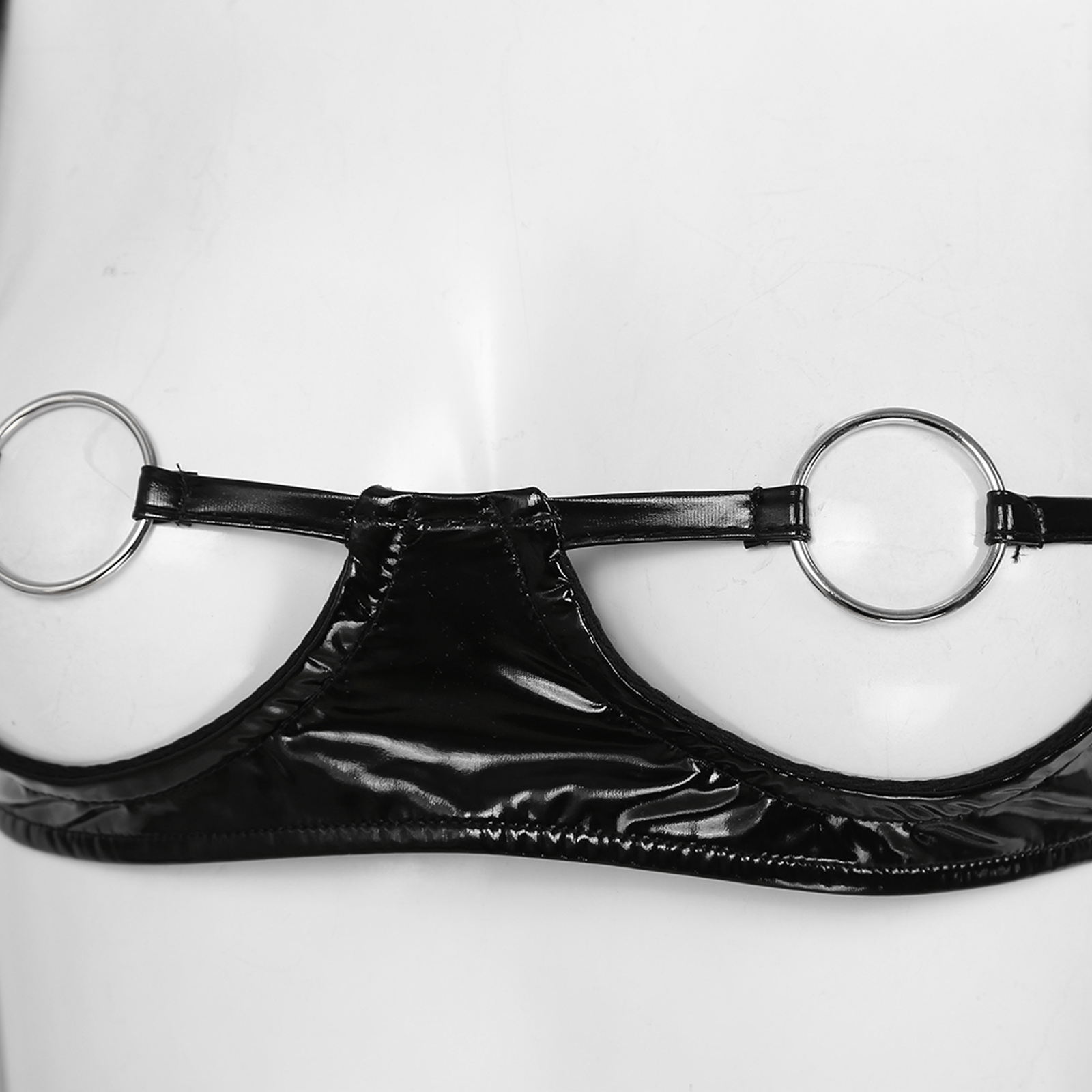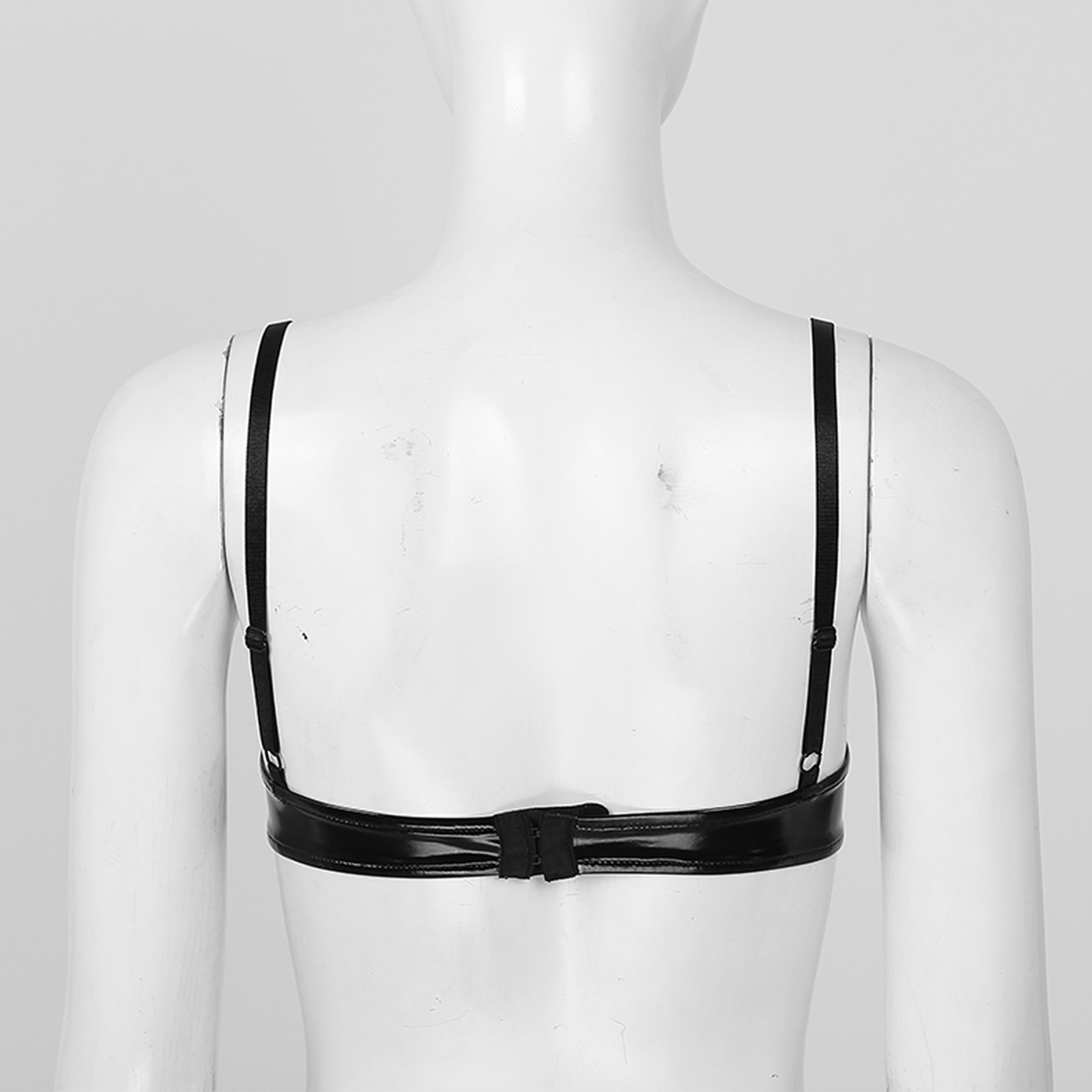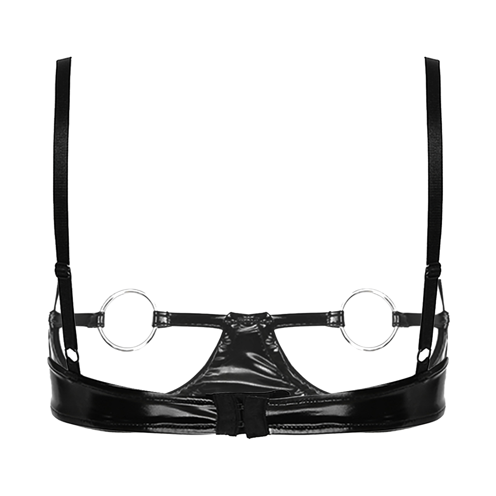 Женский сексуальный бюстгальтер, открытые чашечки, круглый вырез, беспроводное бикини, нижнее белье, регулируемые лямки, бюстгальтер из лакированной кожи