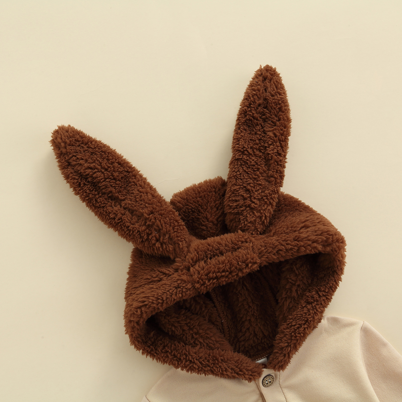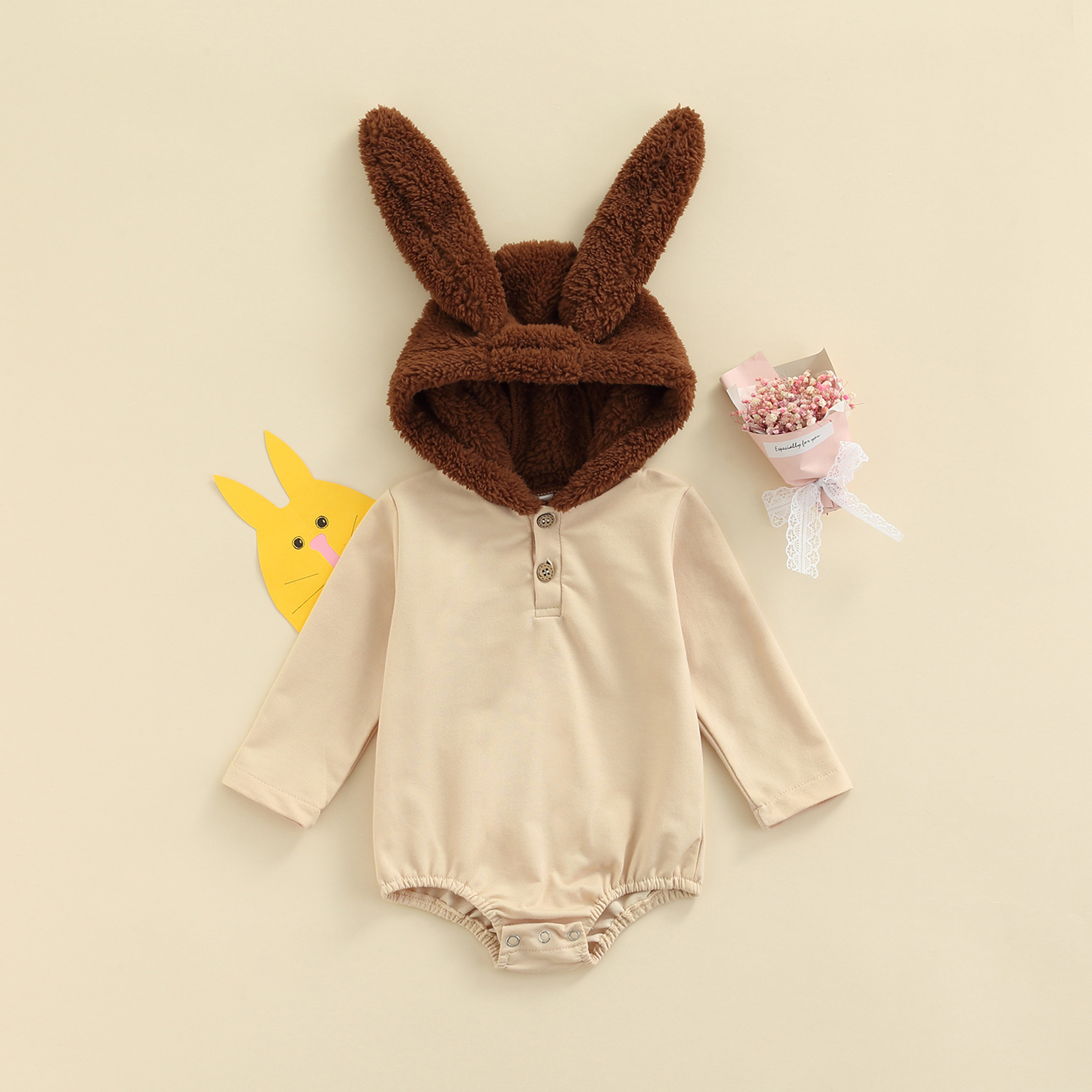 Детский комплект с капюшоном, комплект из комбинезоны, новорожденный, младенец комбинезон с длинным рукавом с милым Плюшевые Уши осенняя одежда костюм