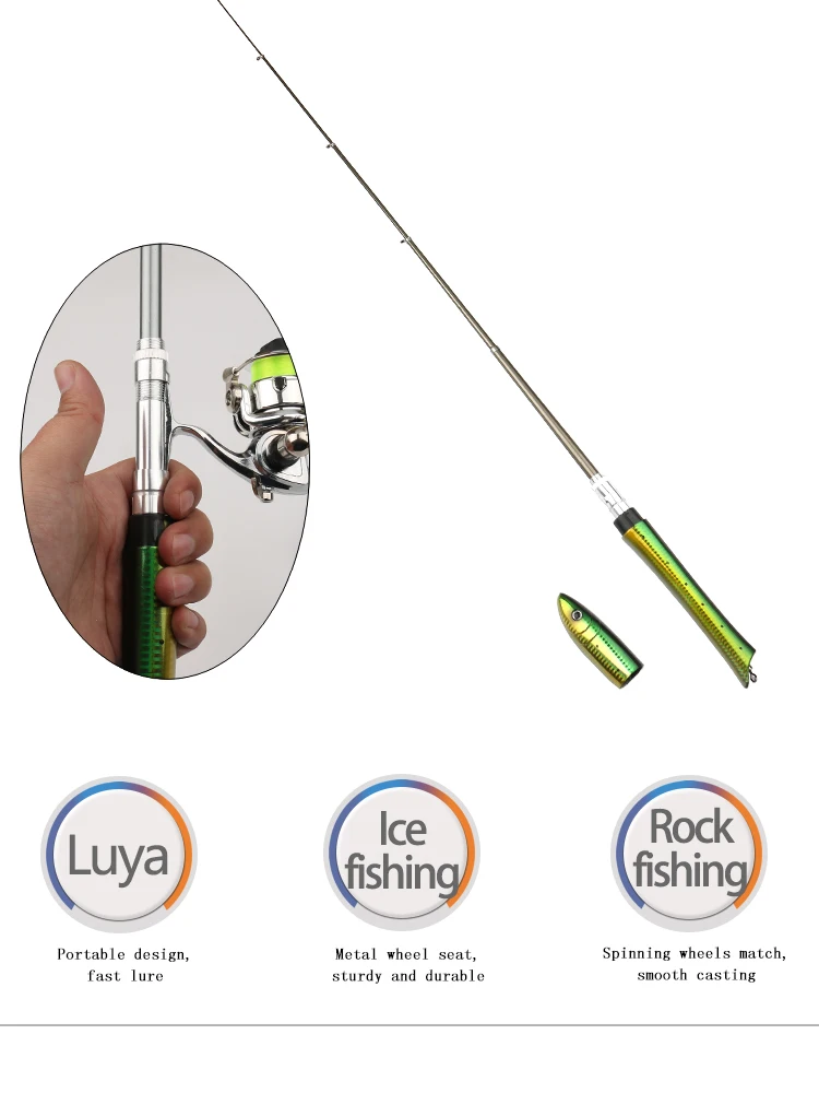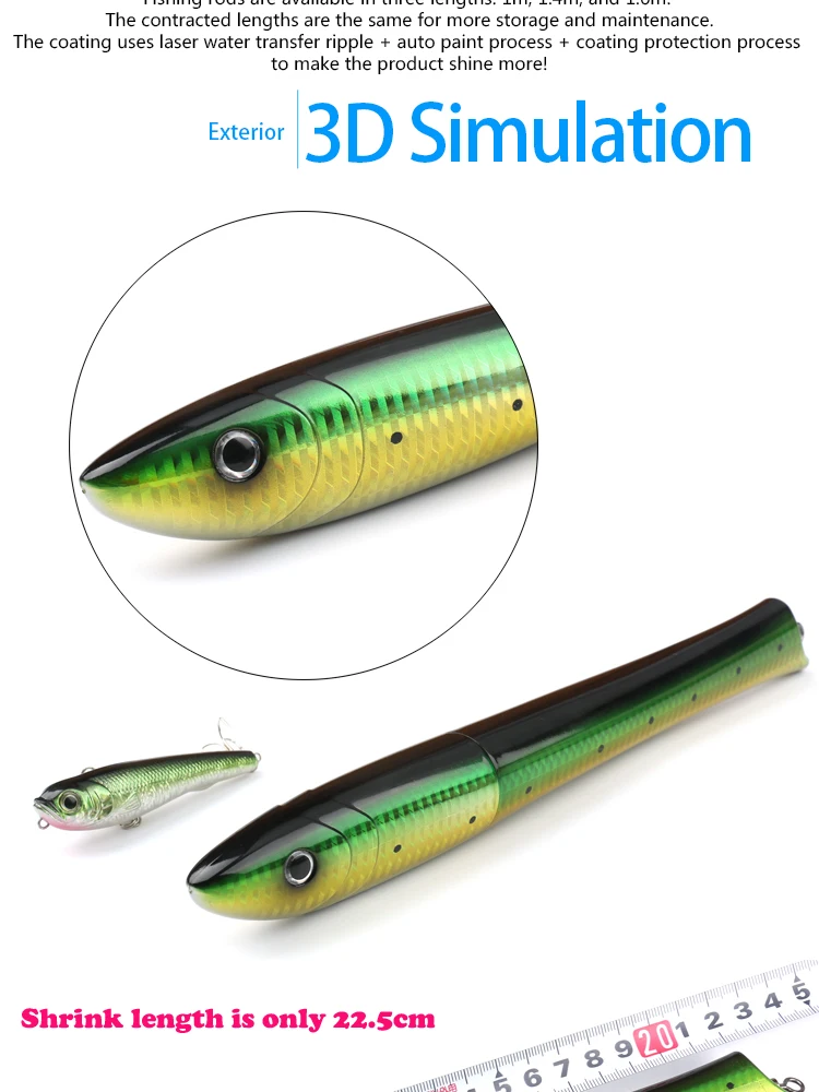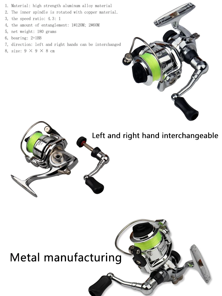 Новый дизайн внешнего вида-имитация формы рыбы, лазерное покрытие всего тела более красивое и качественное! Внутренний стержень изготовлен из аксессуаров для колесного сиденья из алюминиевого сплава, который является прочным и прочным; Каждый участок проволочной петли имеет встроенное магнитное кольцо, и провод выходит гладко; мини-спиннинг с металлическим корпусом удобнее!