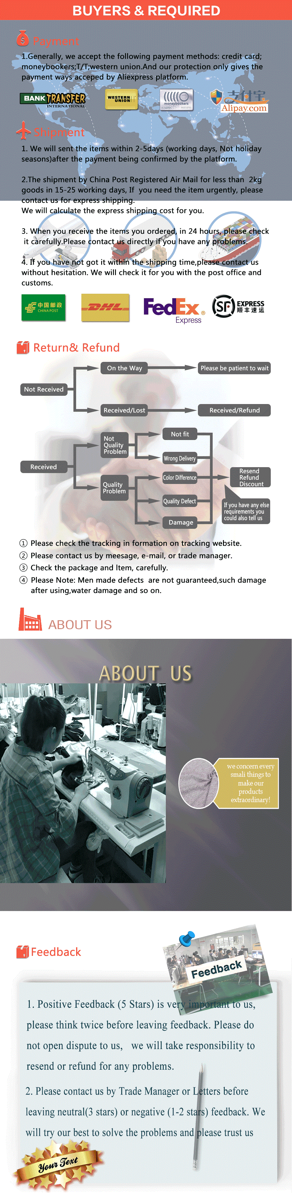 5) Прямая поставка: мы являемся фабричным магазином и поддерживаем прямую доставку. Если вам нужно перепродать наши продукты, мы можем предложить вам фотографии без водяных знаков. Если вы купите много штук, мы можем дать вам лучшую цену, любой вопрос может связаться с нами.