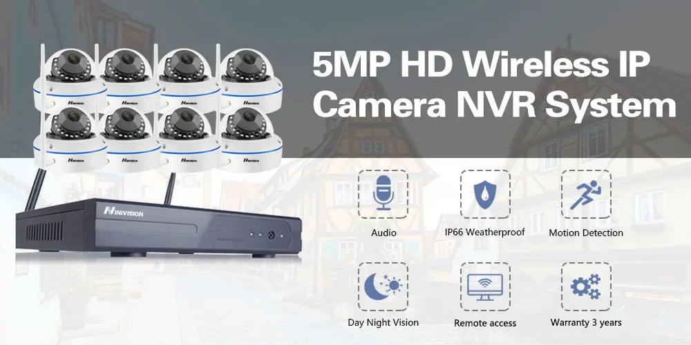 NINIVISION 8CH видеонаблюдения Системы 5MP Wi-Fi Камера Беспроводной NVR запись звука Ночное видение открытый безопасности ip Cam 4 ТБ Системы