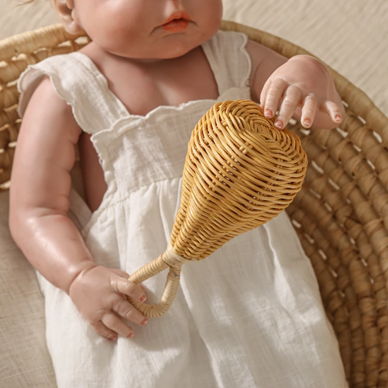 1 шт. деревянная игрушка-погремушка из ротанга BPA бесплатно деревянное кольцо детский Прорезыватель грызун детская спортивная Мобильная погремушка Развивающие игрушки для новорожденных