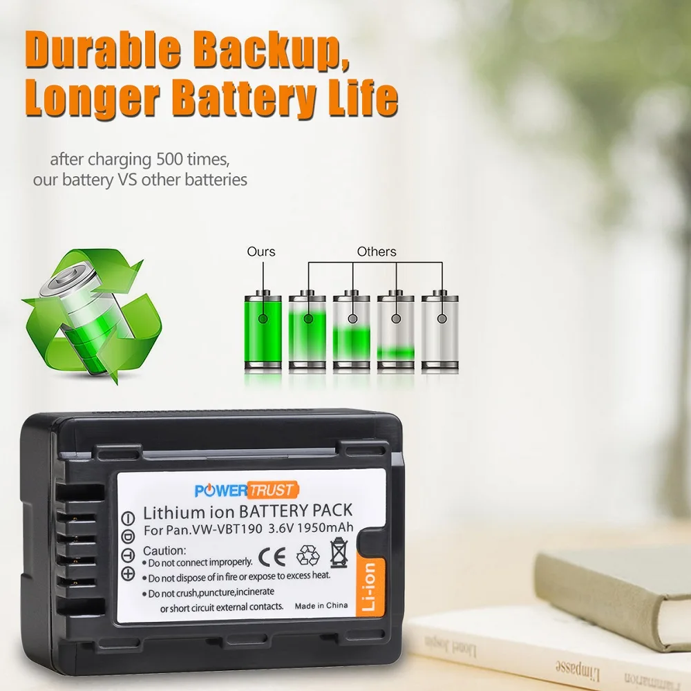 МощностьДоверие VW-VBT190 батареи и двойной Батарея Зарядное устройство для цифрового фотоаппарата Panasonic HC-V800K, HC-VX1K, HC-WXF1K, HCV510, V520, V550, V710, HCV720, HC-V750, HC-V770, HC-VX870, HC-VX981, HC-W580, HC-W850, HC-WXF991