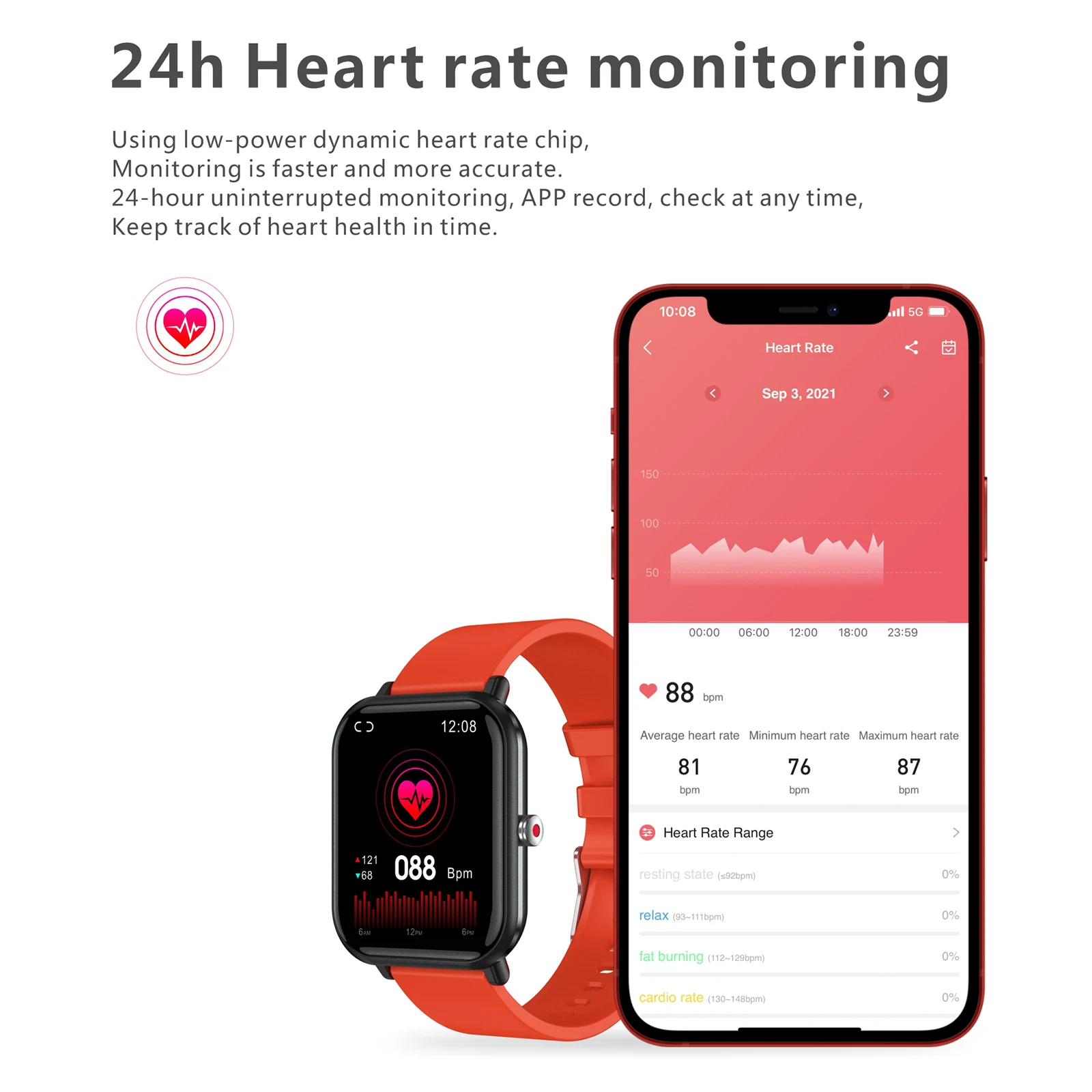 1,7 "большой экран с разрешением 240*280 показывает тонкое и четкое качество изображения. Безбортовая конструкция с изогнутым стеклом 2.5D создает сильную интегрированную визуальную производительность. Тонкий корпус с удобным для кожи силиконовым ремешком легкий и удобный в носке.