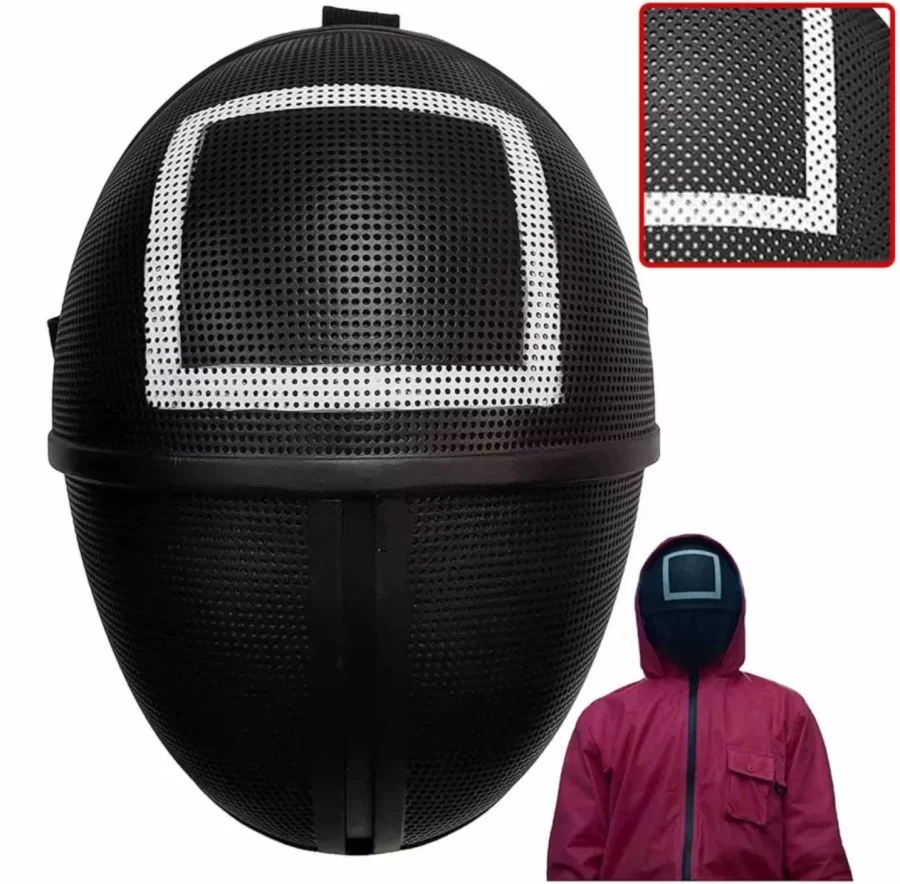 Маска из сериала Игра в Кальмара. Это не просто блестящий способ выделиться на вечеринке. С такой маской можно сделать крутые видеоролики и атмосферные фотографии, ну или просто обращать на себя внимание других людей. Маска очень удобная позволяет носить ее долго без какого либо дискомфорта.