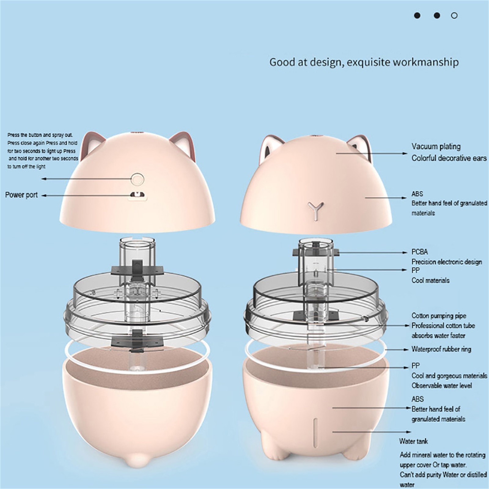 Диффузный туман на протяжении всего живого пространства и увеличивает влажность кожи