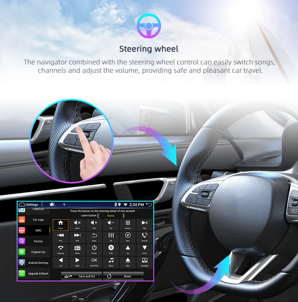 DSP + Carplay + сенсорный экран + радио + FM/AM + RDS + gps-навигация + карта + Wifi + Bluetooth + управление рулевым колесом + сплит-экран + USB + SD + AUX in/Out + зеркальная ссылка + камера заднего вида + сабвуфер + Play Sore + эквалайзер + набор обоев + логотип автомобиля + 3G/4G + TPMS + DAB + OBD 2 + DVR + TV