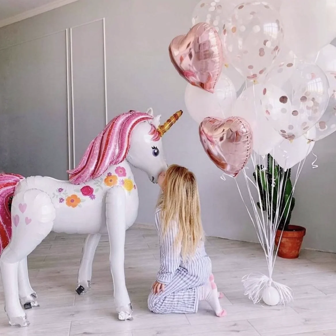 3D большой единорог вечерние аксессуары подарок Единорог прогулочные воздушные шары из фольги в виде животного для девочек на день рождения вечерние украшения