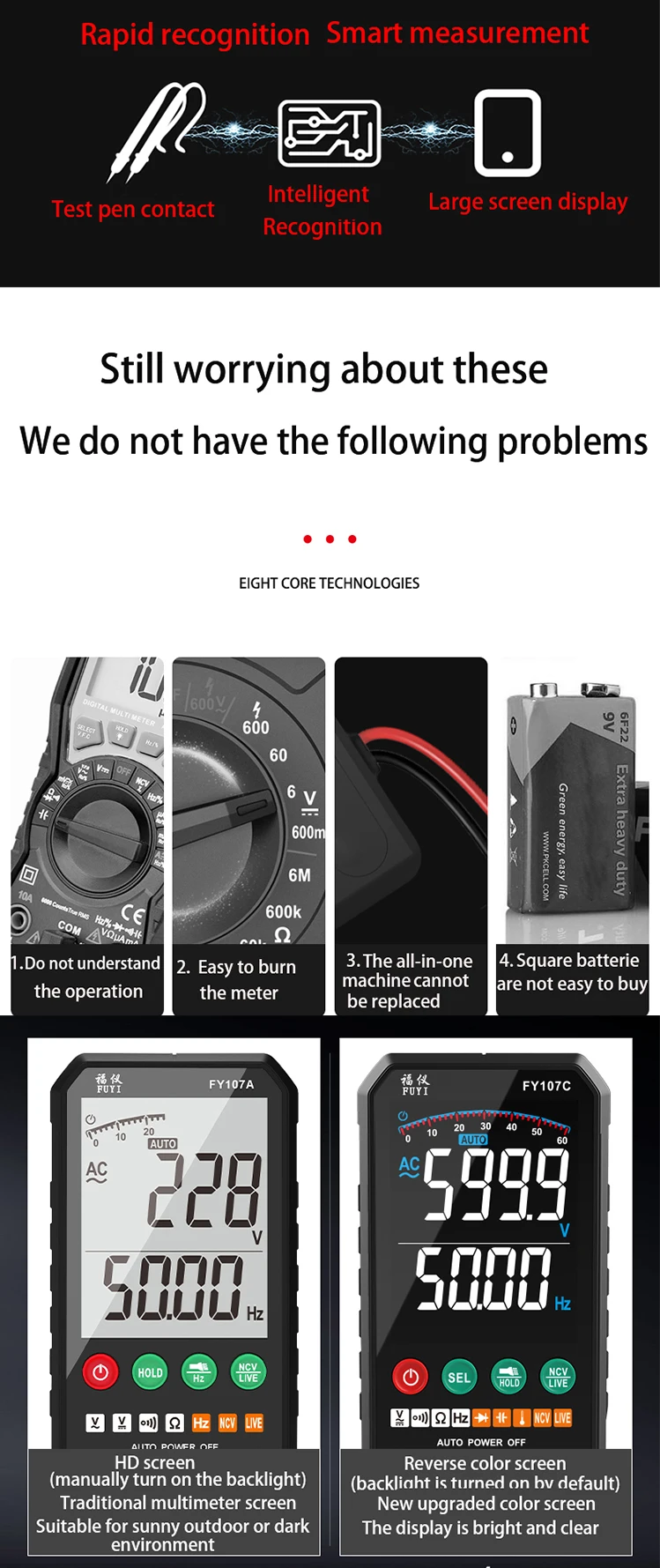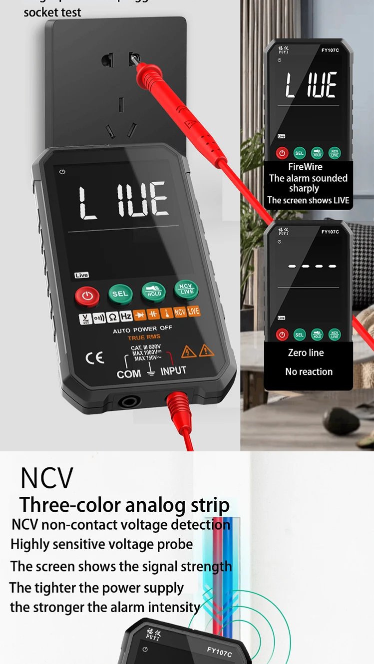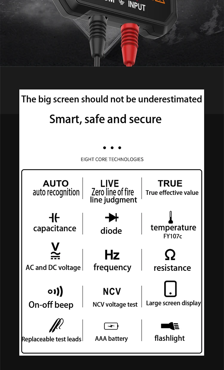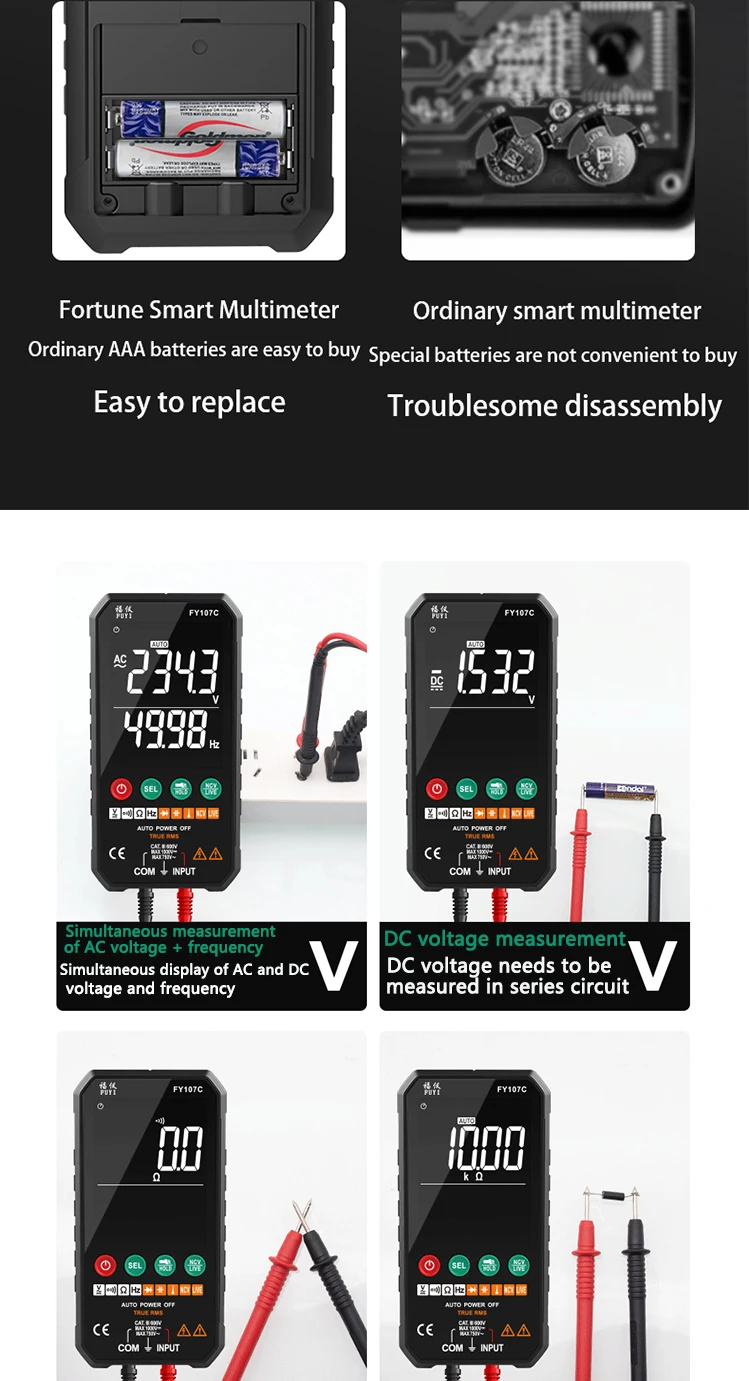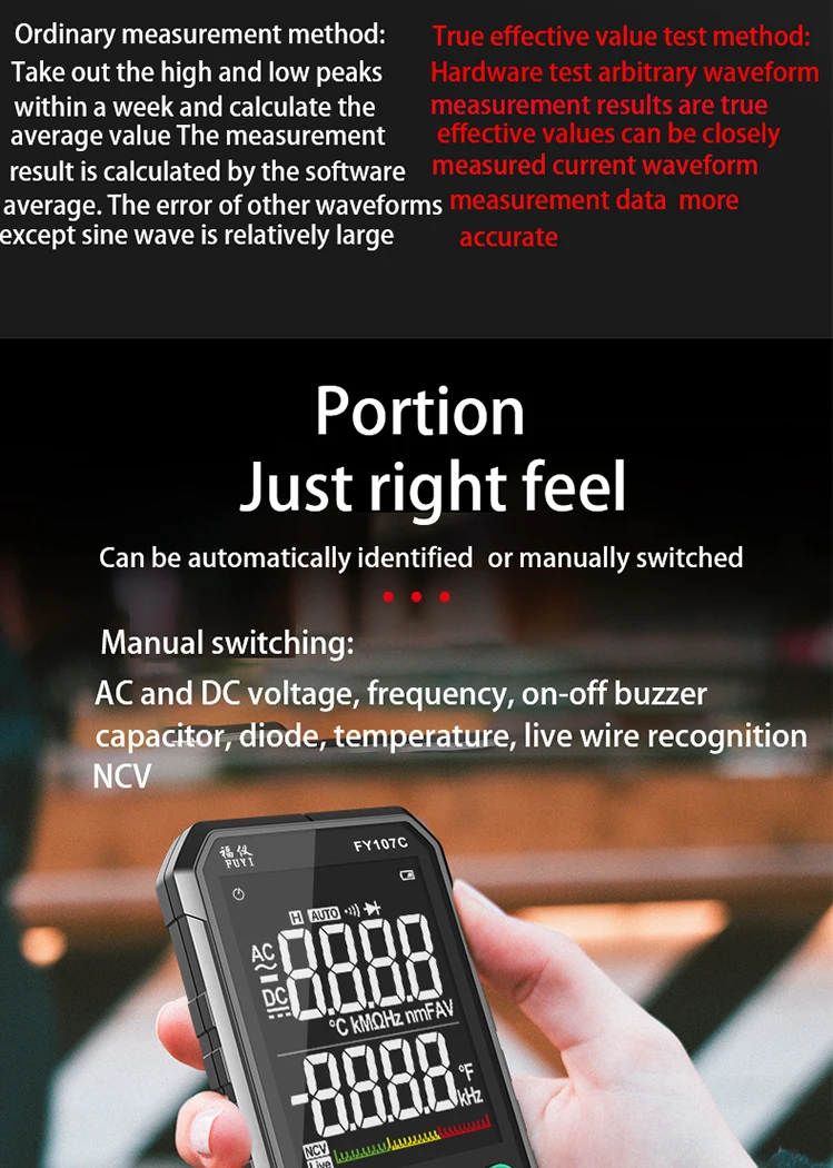3. Интеллектуальное распознавание напряжения переменного и постоянного тока и автоматическое переключение диапазона, нет необходимости менять шестерни;