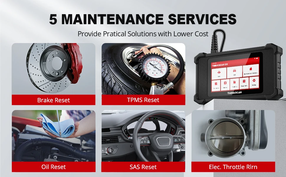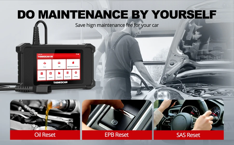 Thinkscan SR6 6 Система (ABS/SRS/ECM/TCM/BCM/TPMS) диагностическая + 5 Сброс бессрочной службы (тормоз/масло/SAS/TPMS/дроссельная заслонка) + WiFi бесплатное обновление Thinkscan SR4 4 системы (ECM/TCM/ABS/BCM ) Диагностический + 3 сброса бессрочного обслуживания (масло/тормоз/SAS)+ WiFi бесплатное обновлениеThinkscan SR2