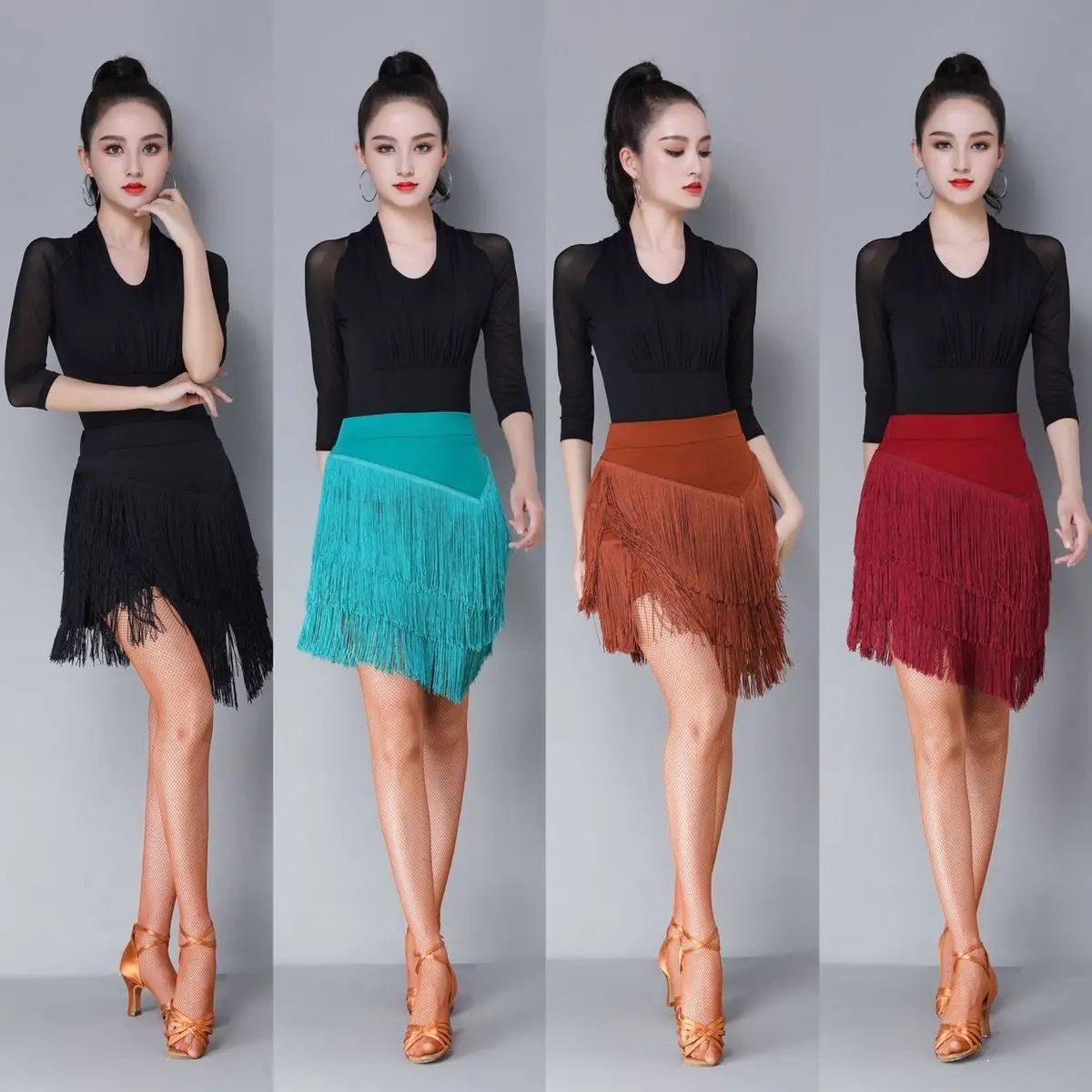 Юбка для латинских танцев, новое платье для тренировок, Женская юбка средней длины для взрослых, юбка с кисточками, платье для соревнований, танцевальное платье для выступлений
