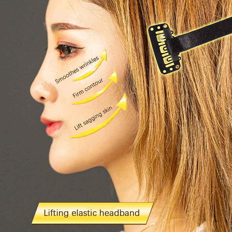 4. Потянув за одну секцию назад, прикрепите подъемную ленту прямо над ухом. Потяните ленту вдоль линии волос к другому размеру, чтобы закрепить