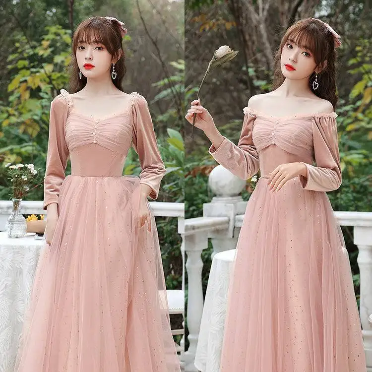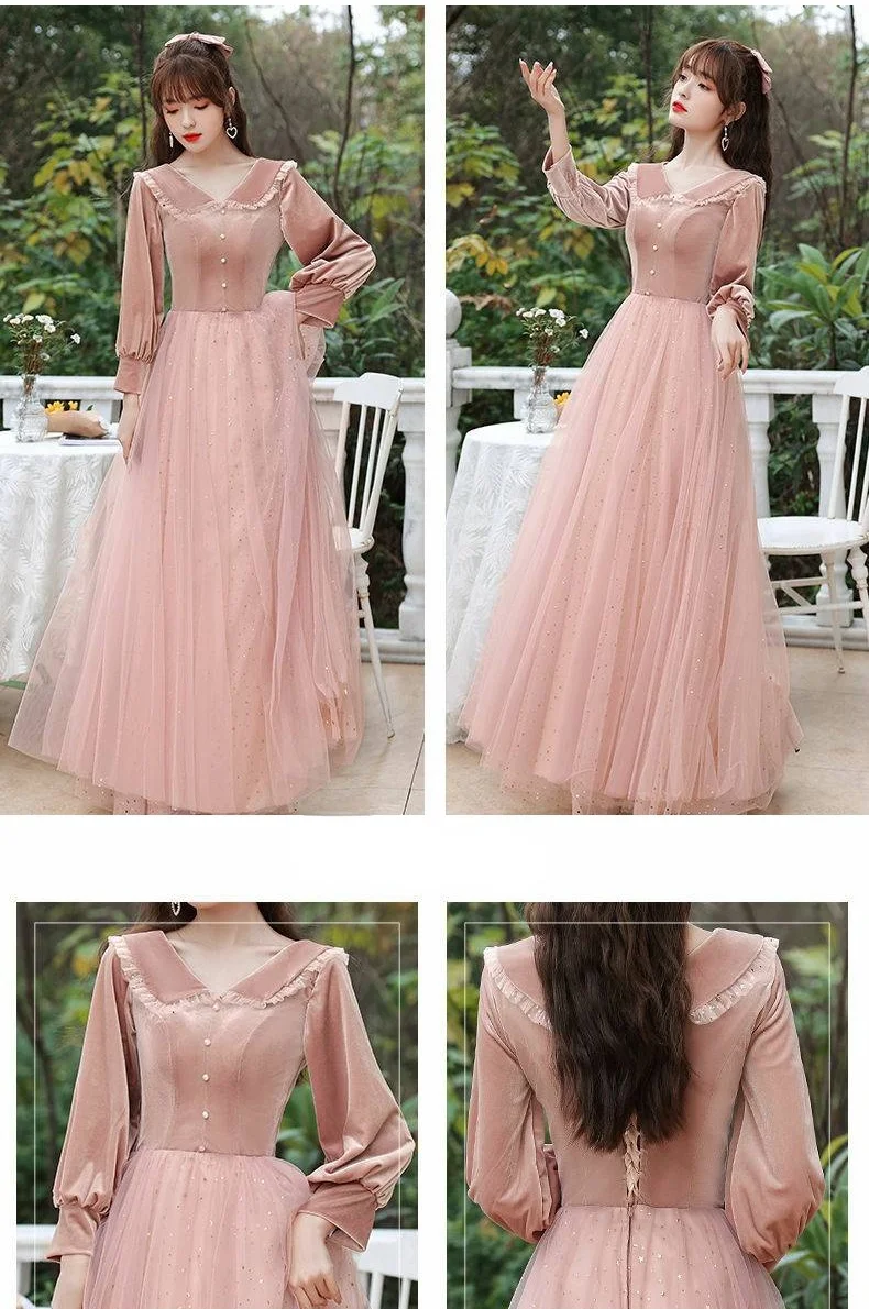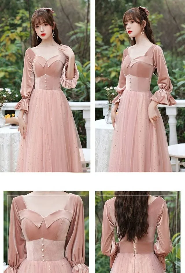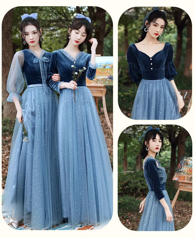 Розовый синий бархат тюль свадебное Гость платье с длинным рукавом халат