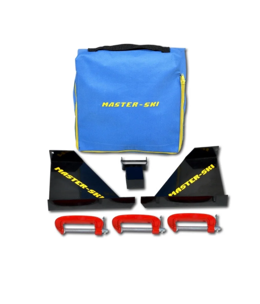 Лыжный станок Master-ski на опорах. Предназначен для подготовки лыж в дорожных условиях, нанесение мазей и парафинов. Для его установки Вам нужен только обычный стол, скамья или доска.
