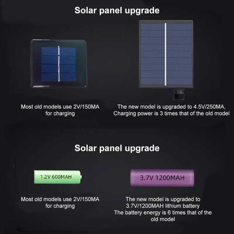 [Встроенный аккумулятор большой емкости]-Эти солнечные огни starbright обладают более отличной производительностью с высококачественной встроенной перезаряжаемой батареей и солнечной панелью большего размера.