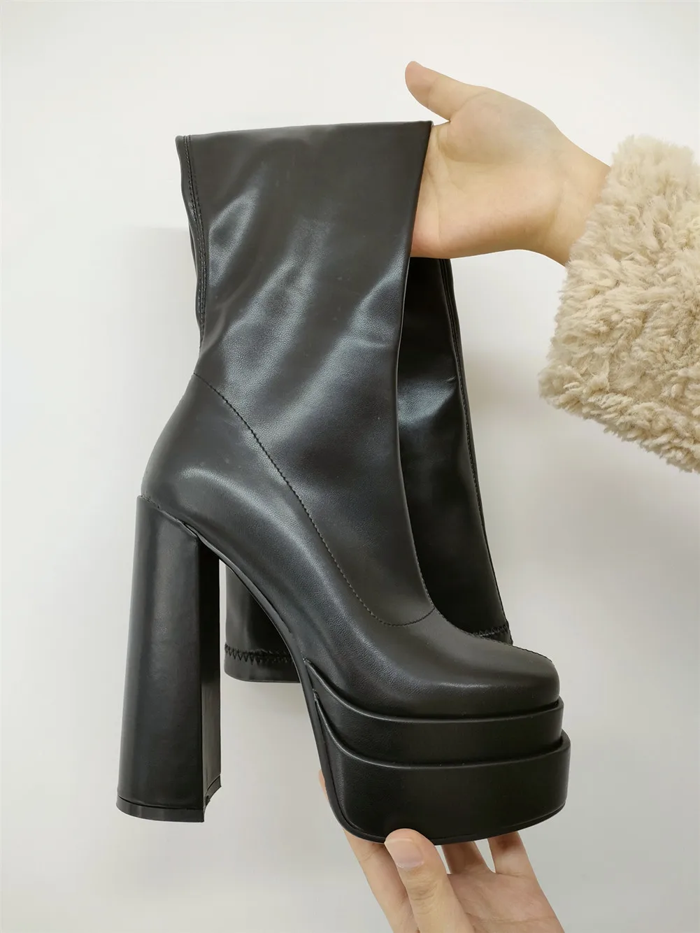 Женские сапоги выше колена; Обувь на очень высоком каблуке с двойной платформой; Лидер продаж 2021 года; Новинка; Пикантная обувь на не сужающемся книзу массивном каблуке
