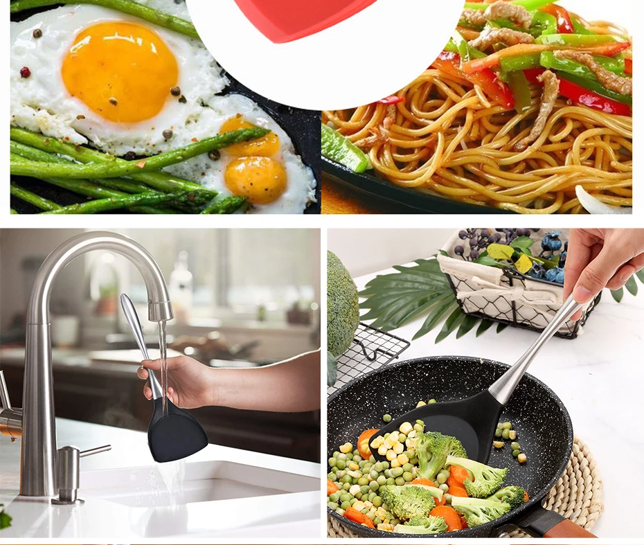 2. Гибкий: лопатка для вока высокотемпературный силиконовый нож делает приготовление пищи веселым. Эргономичный дизайн для облегчения переворачивания. Необходимый инструмент для приготовления пищи с антипригарной посуды и посуды, не царапает кастрюли и сковородки.