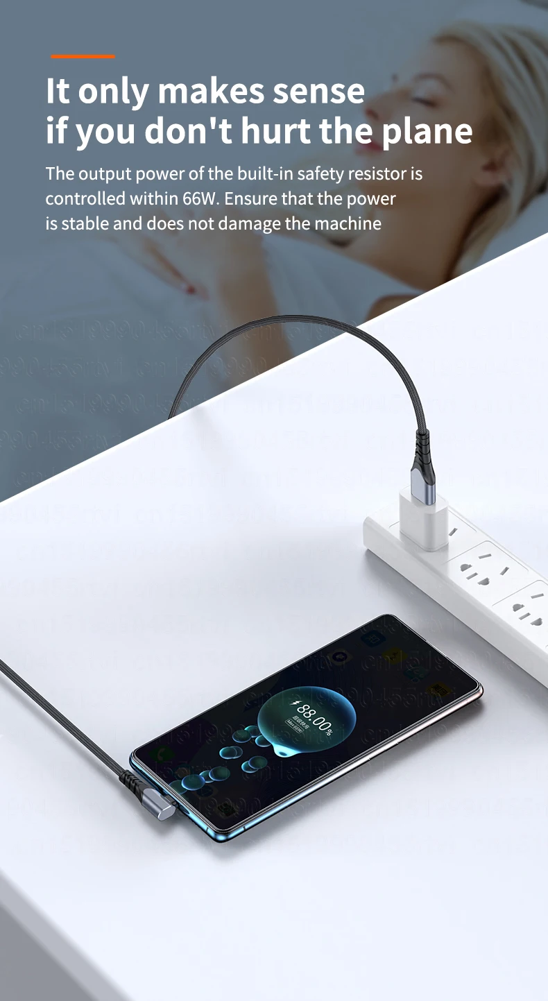 90 Degree USB Type C Fast Charging Cable 6A 66W For Huawei Mate40 Pro 5A USB C Charger Cable Data Cord for Xiaomi Samsung 1/2/3M