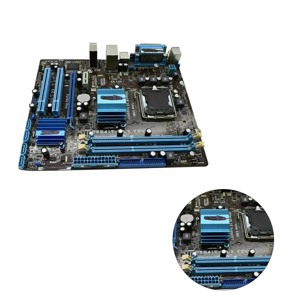 Материнская плата оснащена твердотельным конденсатором, двухканальным разъемом DDR3, разъемом LGA 775 и интерфейсом HDMI + VGA.