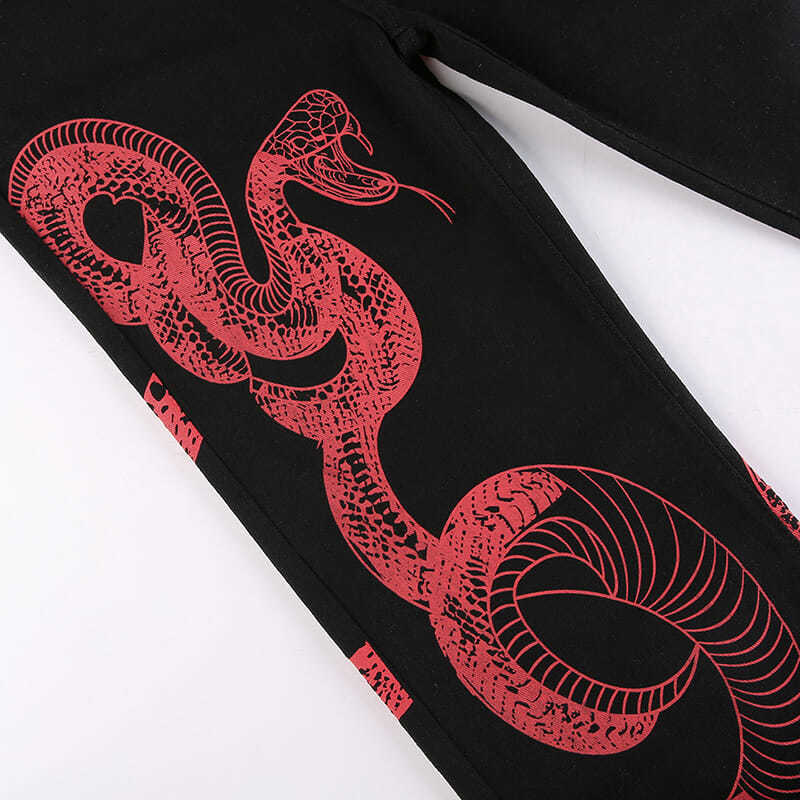 Мешковатые джинсы со змеиным принтом, женские джинсовые брюки в стиле хип-хоп с высокой талией, темно-академические готические уличные корейские брюки-карго, джинсы 90s Y2K