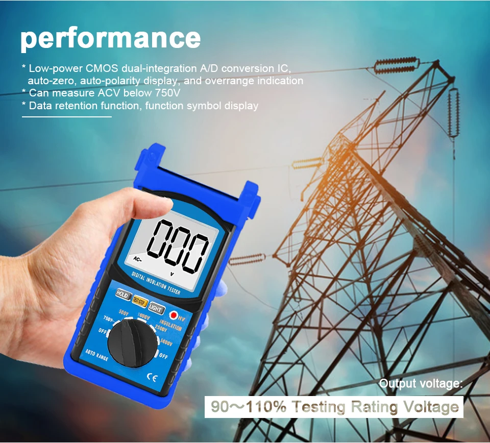 -Этот тестер применяется для всех видов или электрического оборудования и изоляционных материалов, таких как трансформатор, электромотор, кабель, переключатель, прибор и т. д.