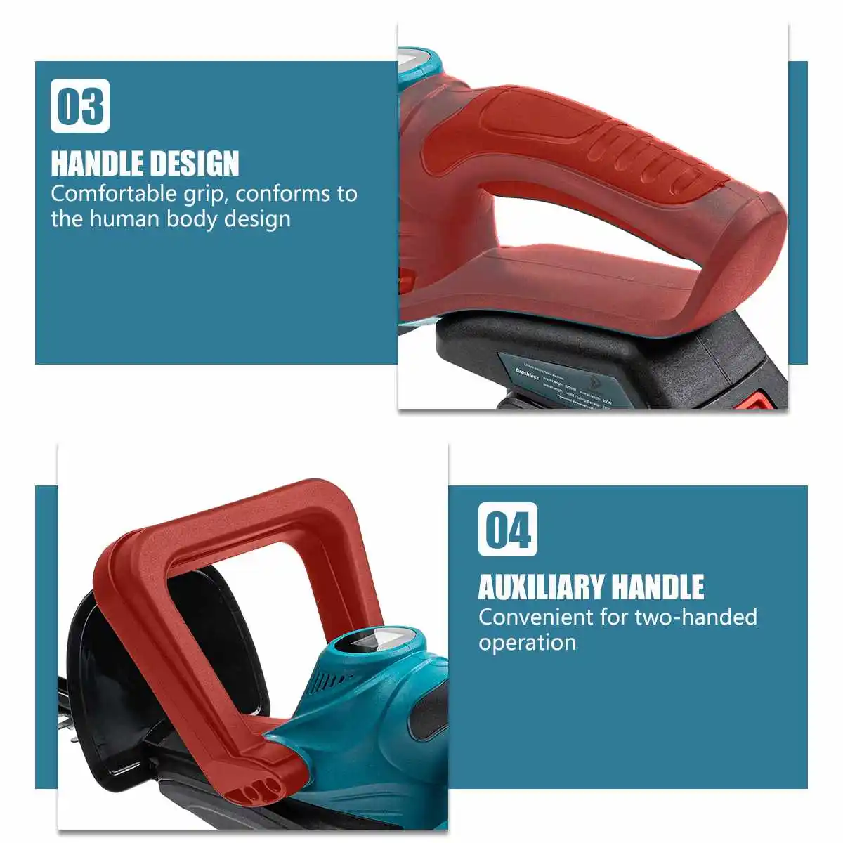 -Пожалуйста, не забудьте держать заднюю ручку триммера для живой изгороди правой рукой и переднюю ручку триммера для живой изгороди левой рукой для безопасной работы