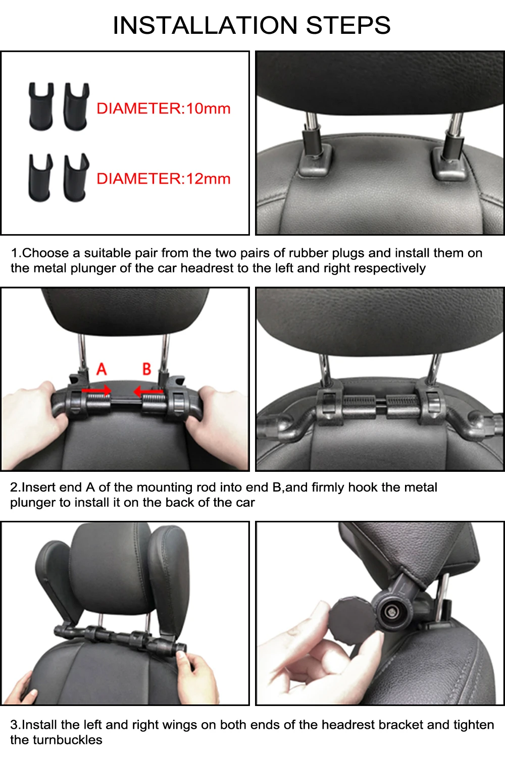 2.Easy installation.The headrest can be removed, and it can be easily fixed on the headrest support bar.Width and height adjustable.