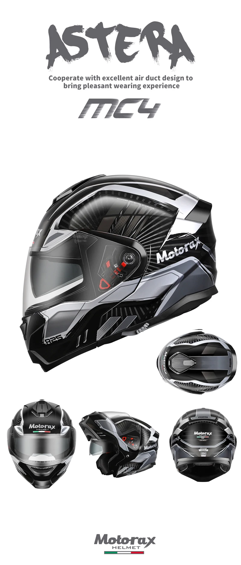 Прямой объектив MOTOGP уровня обеспечивает потрясающие углы обзора и визуальные эффекты. Стандартная спортивная Пряжка позволяет реализовать визуальный опыт мотоциклистов GP на улице.