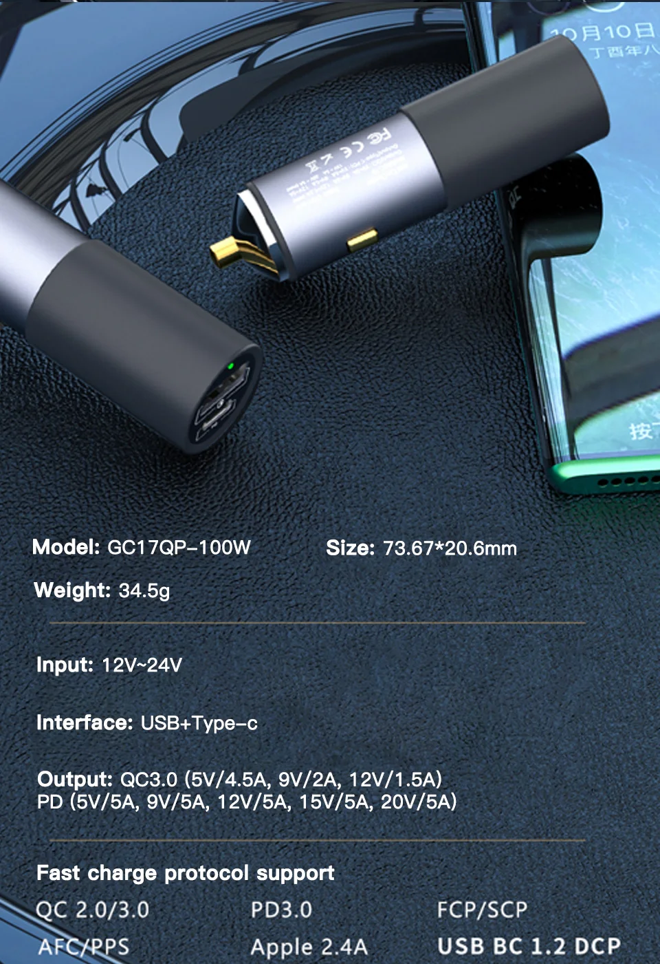 Совместимый протокол USB-C: PD3.0 QC4 / QC3.0 FCP, SCP AFC PPS Apple2.4a DCP BC1.2