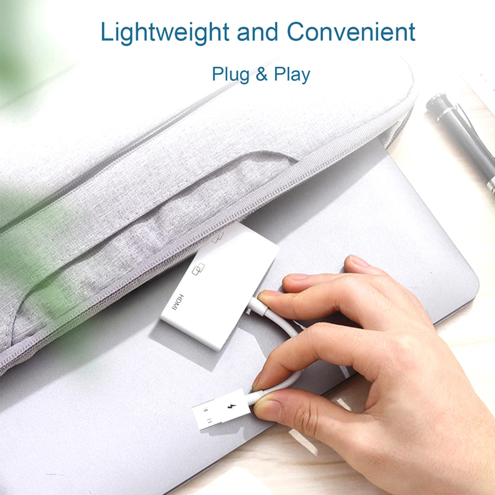 8P USB to HDMI-Compatible 3 Ports Cable Splitter Converter 1080P HD Digital AV OTG Adapter for iOS Hub Card Reader
