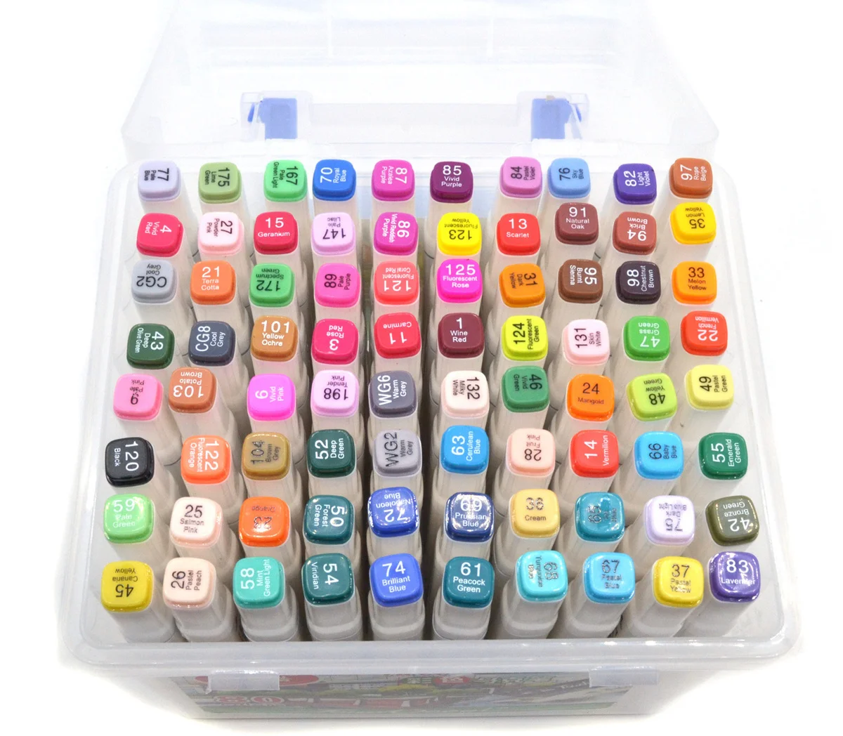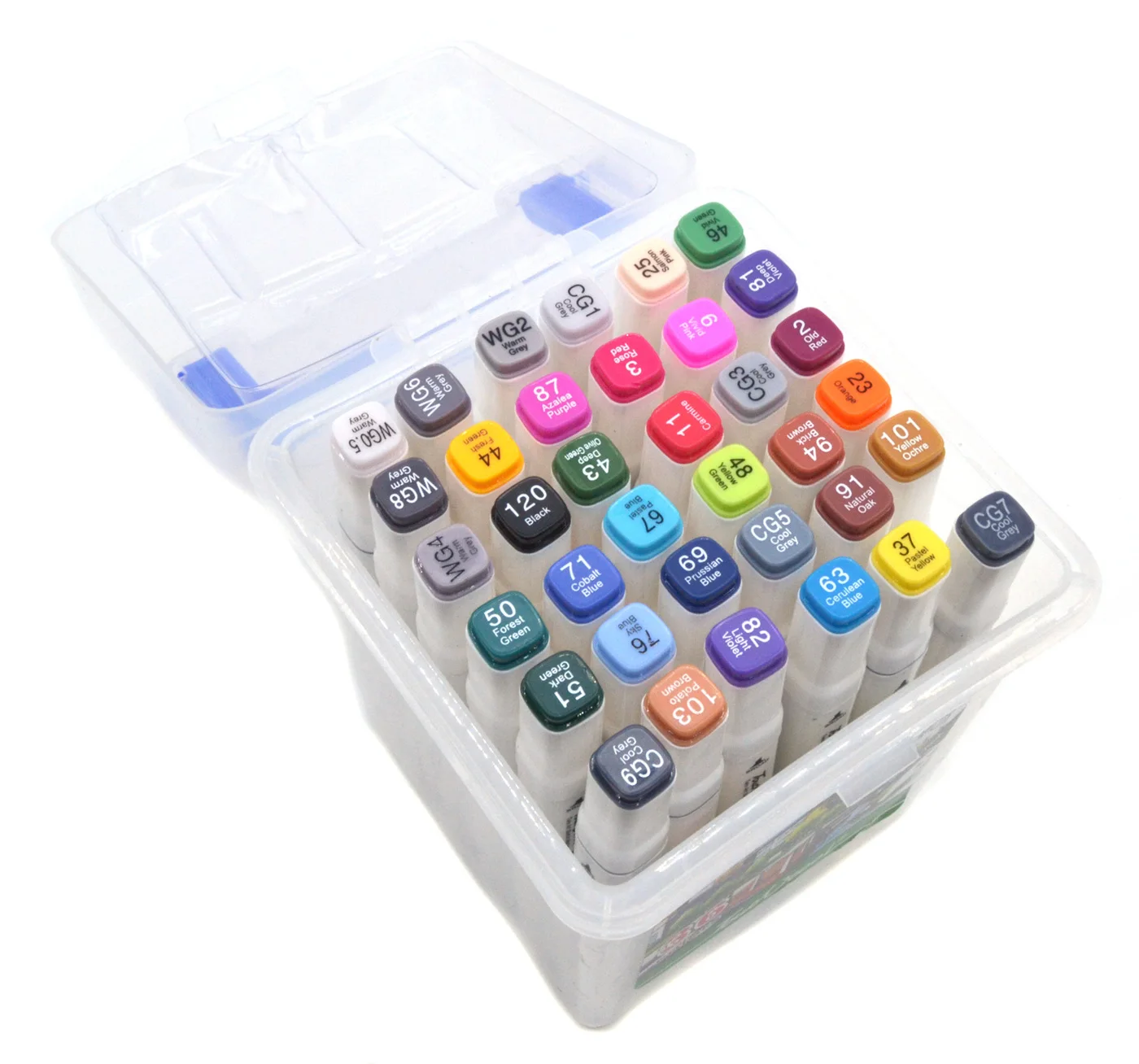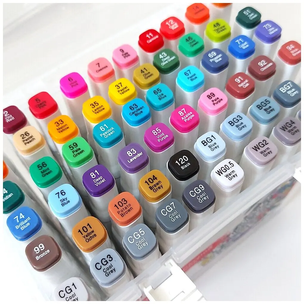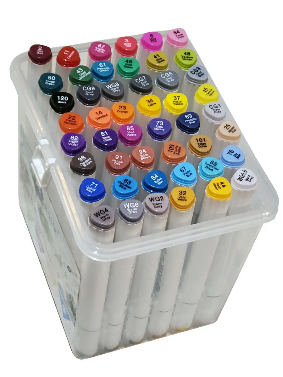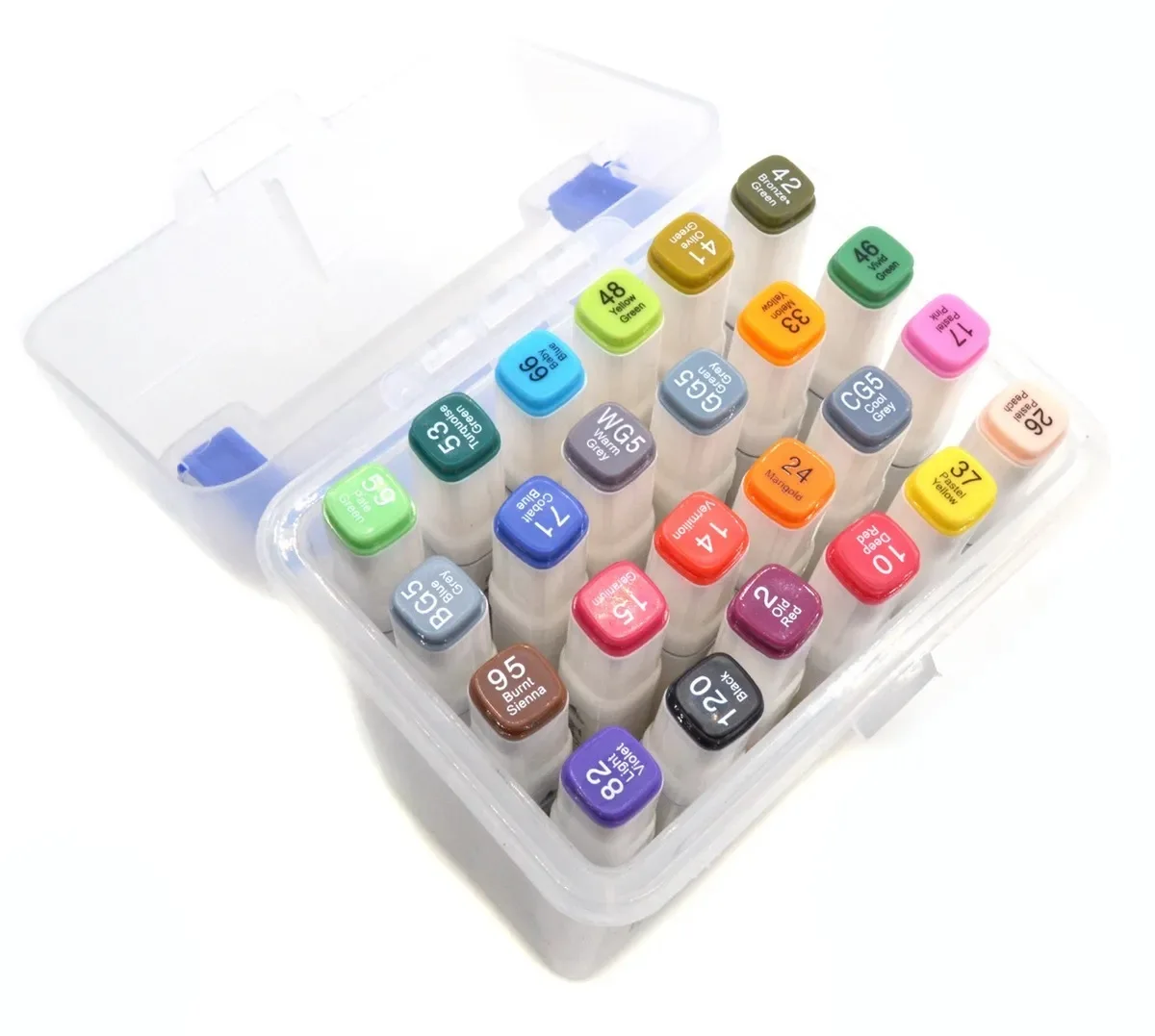 Комплект качественных спиртовых маркеров для молодых и взрослых художников. Он прекрасно подойдет тем, кто профессионально рисует комиксы, забавные наброски, эскизы татуировок, каллиграфические изображения, а также изготавливает другие авторские произведения изобразительного искусства в современном стиле.